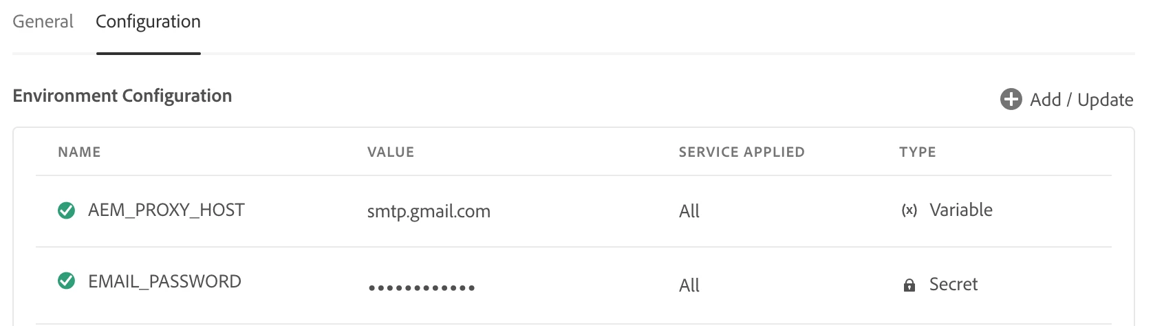 Then you need to enable the ENV Variables using the Cloud Manager: