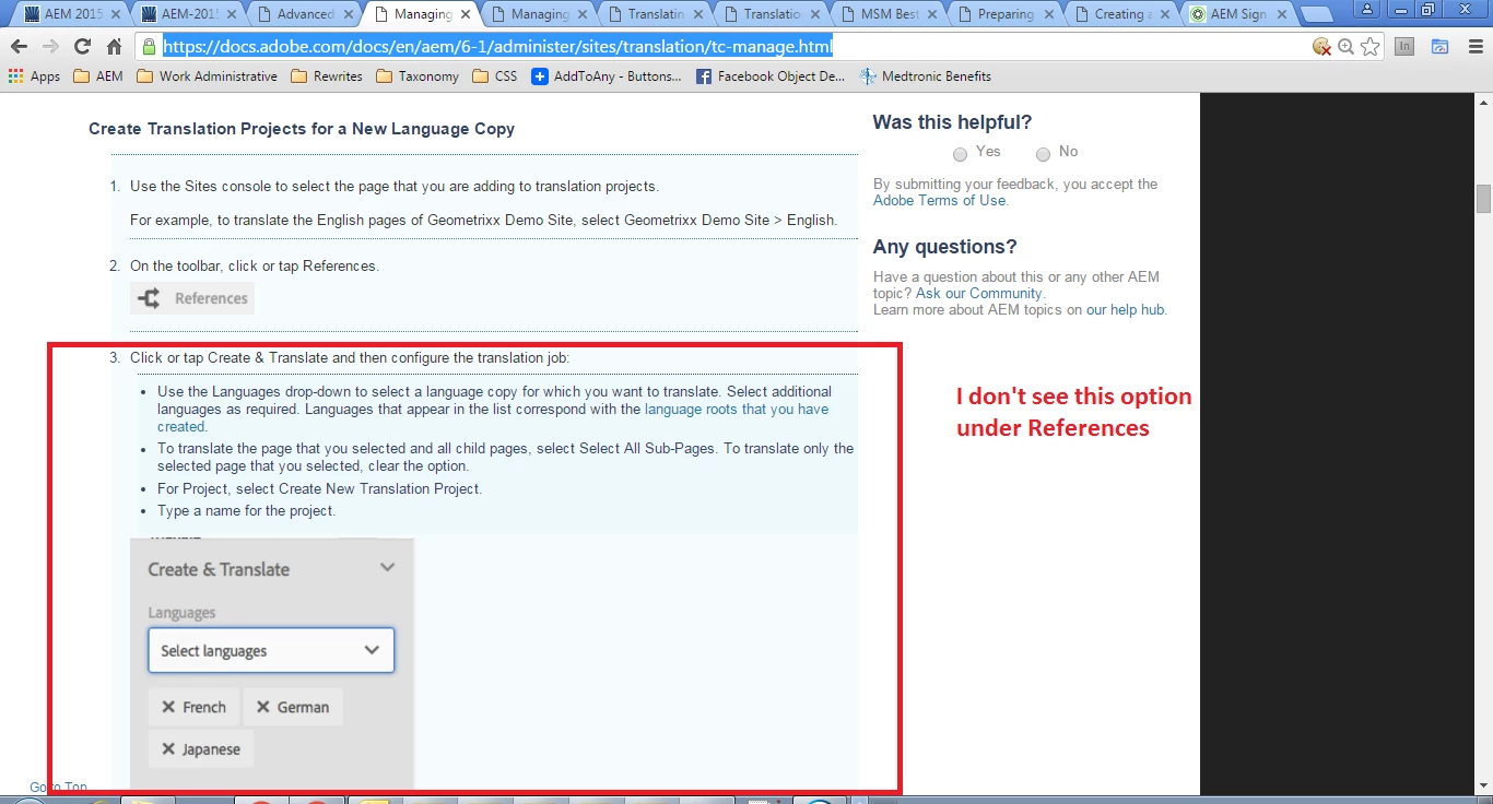 I do not see the "Create & Translate" menu under the References panel on my page. Nor do I see it on the Geometrixx page. Am I looking in the wrong place? Is there a prerequisite for enabling this menu?