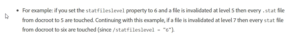 I actually thought that when if a page is republished/invalidated at level=4 (let's assume /statfileslevel = 6), then pages from level=4 and above are invalidated. The way I read Adobe's statement, it's says pages on levels 0 to 4 invalidated.
