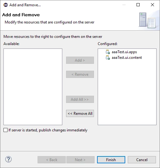 Here's my "Add and Remove servers" screen. It shows that .core, launcher, and tests aren't even options: