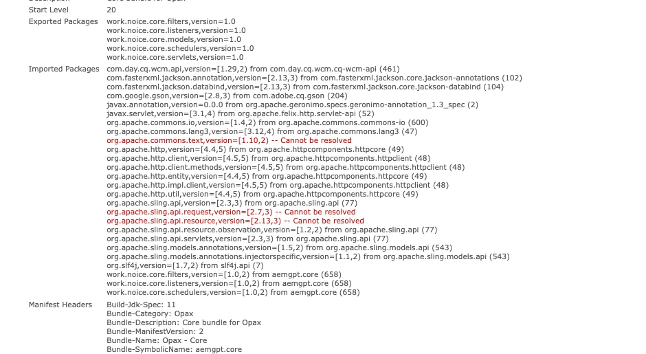 I'm running AEM 6.5.17 (with uber-jar 6.5.17) and I've gone through the steps to install a third party package in my local author instance. However the bundle is not active and I see the following issues under imported packages: