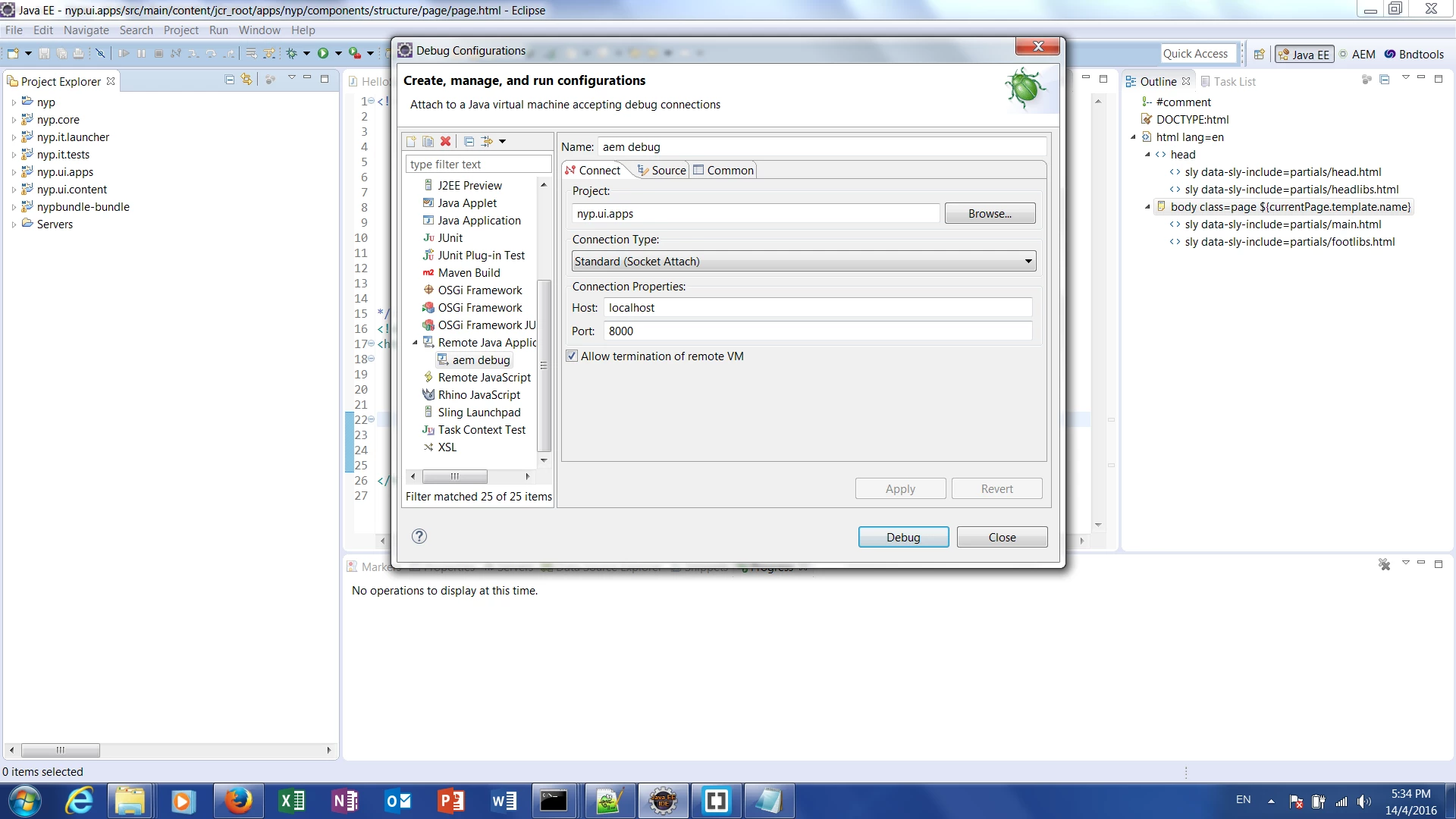 Cannot start the remote debug on AEM 6.1 in Eclipse