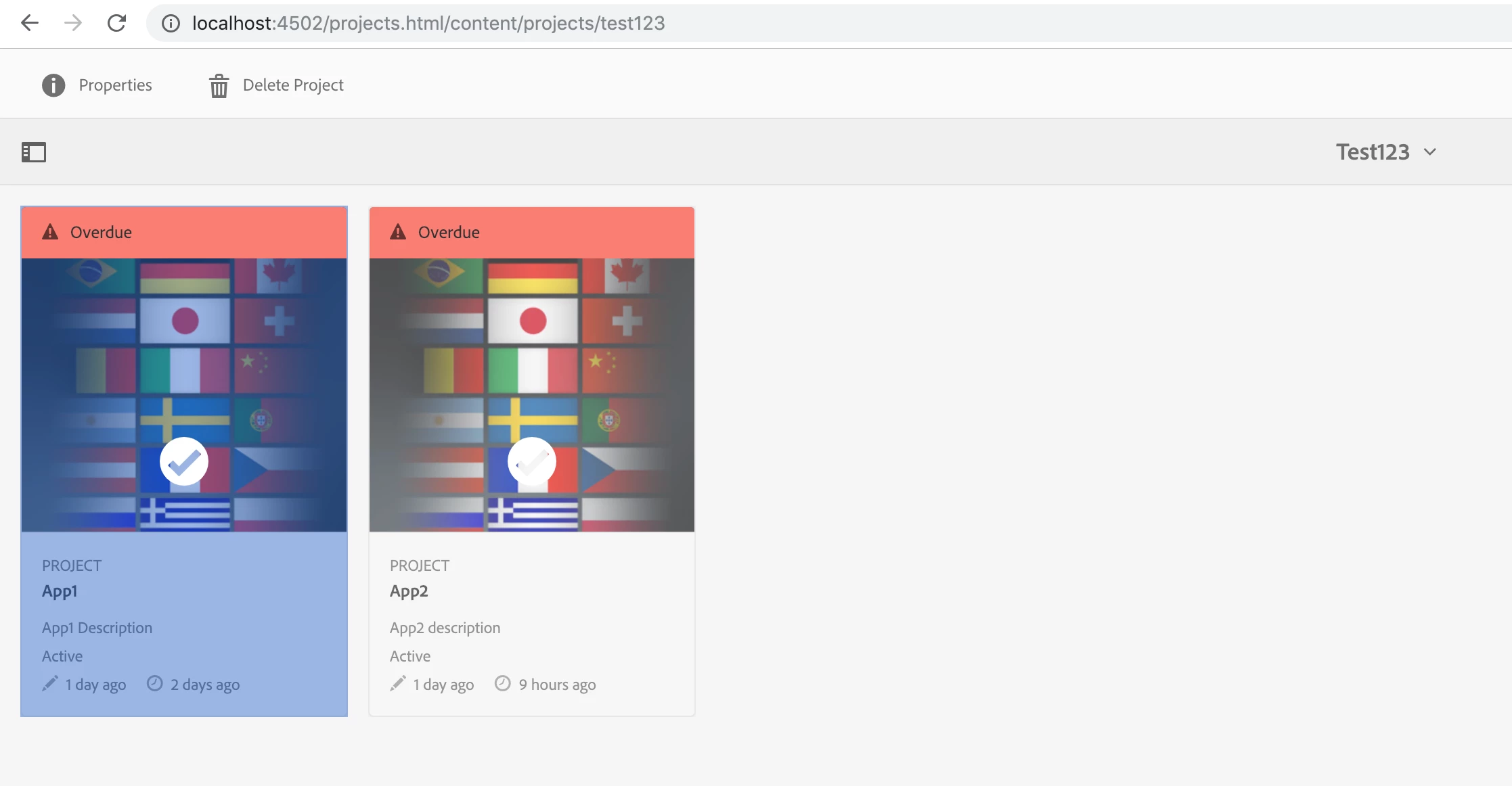 6. Now mouse hover on another project, you will notice the check mark is appearing at the center of the project card i.e., basically an image (which is added by css). Click on it.