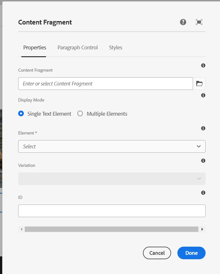 The author sets the list of content fragments in the components dialog then the component fetches content from selected content fragments.