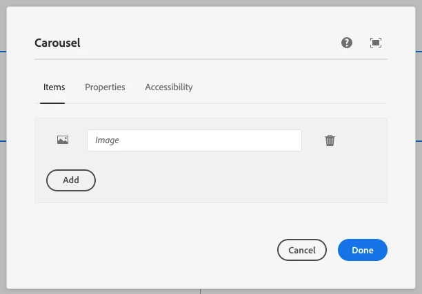 When I click on "Add", and select a component item, it does not show immediately on the dialog (Although it does update in the page on the carousel component itself).