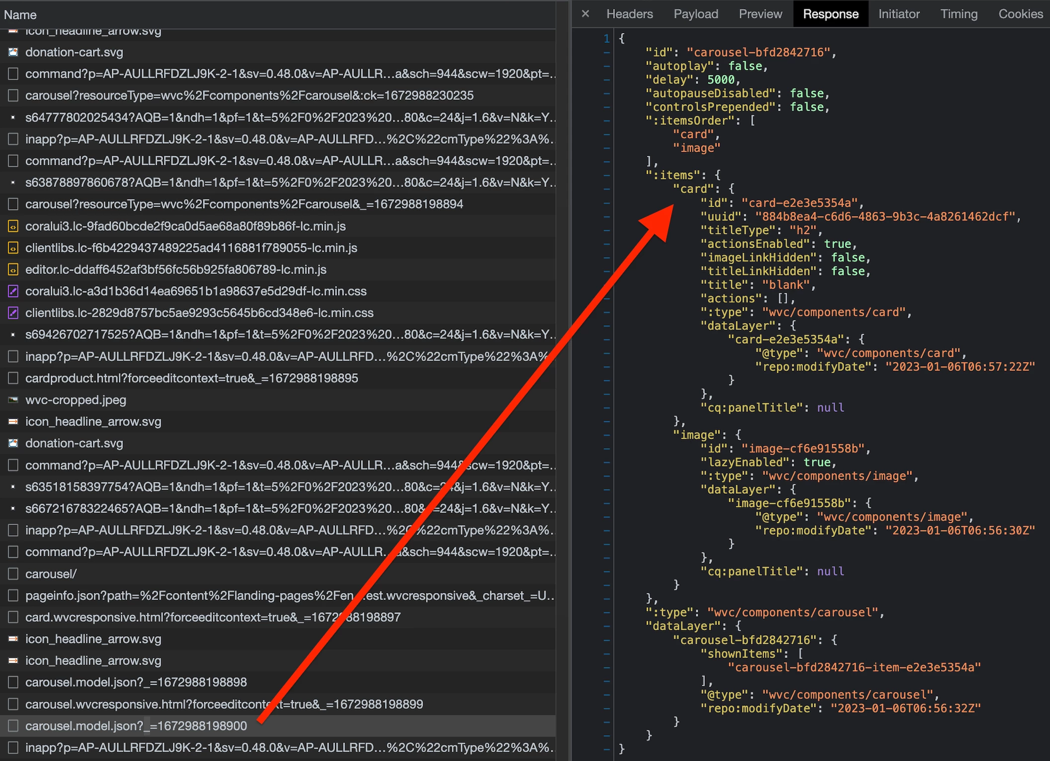 I find that when I add an item initially, it does make a "carousel.model.json" call to retrieve the item. But again there is nothing that update it in the dialog.