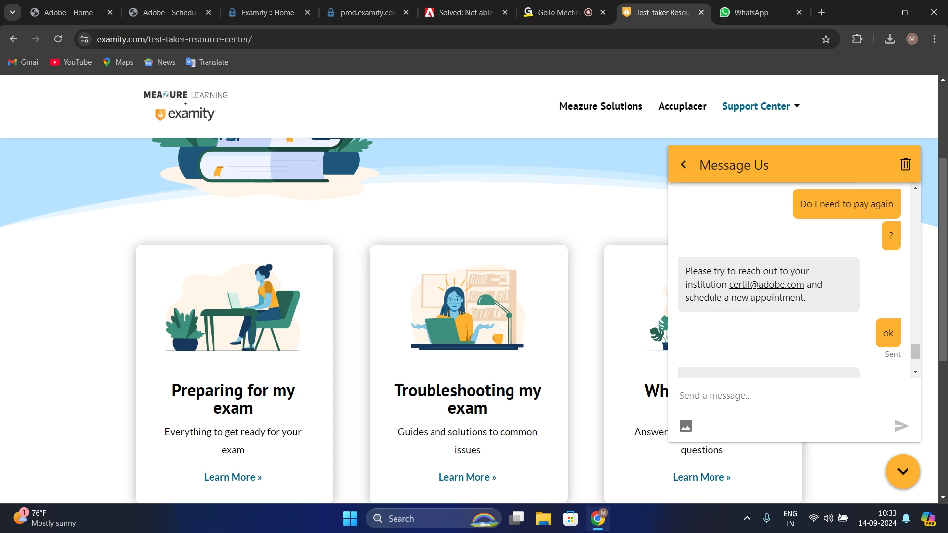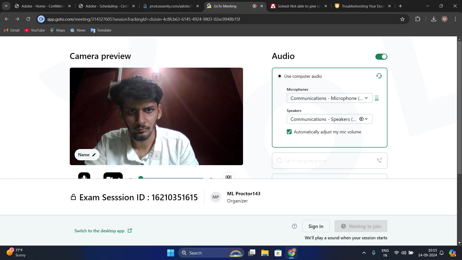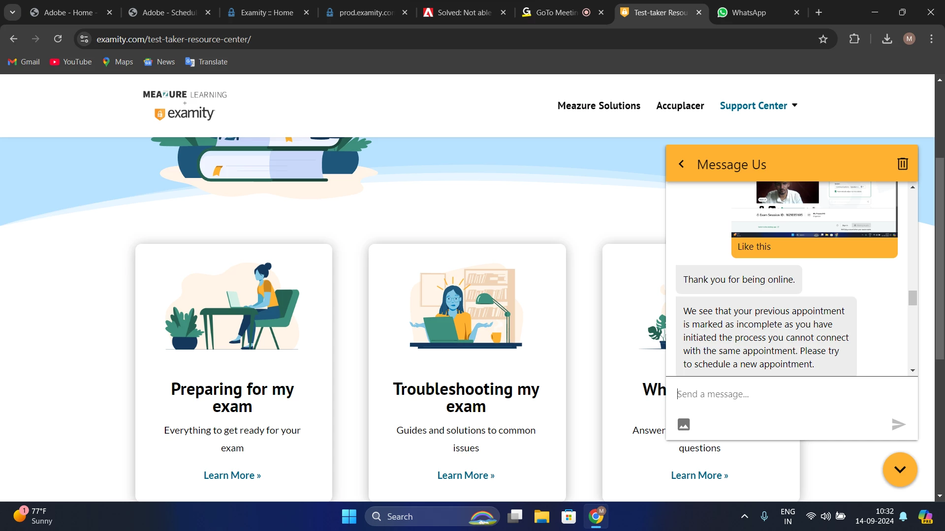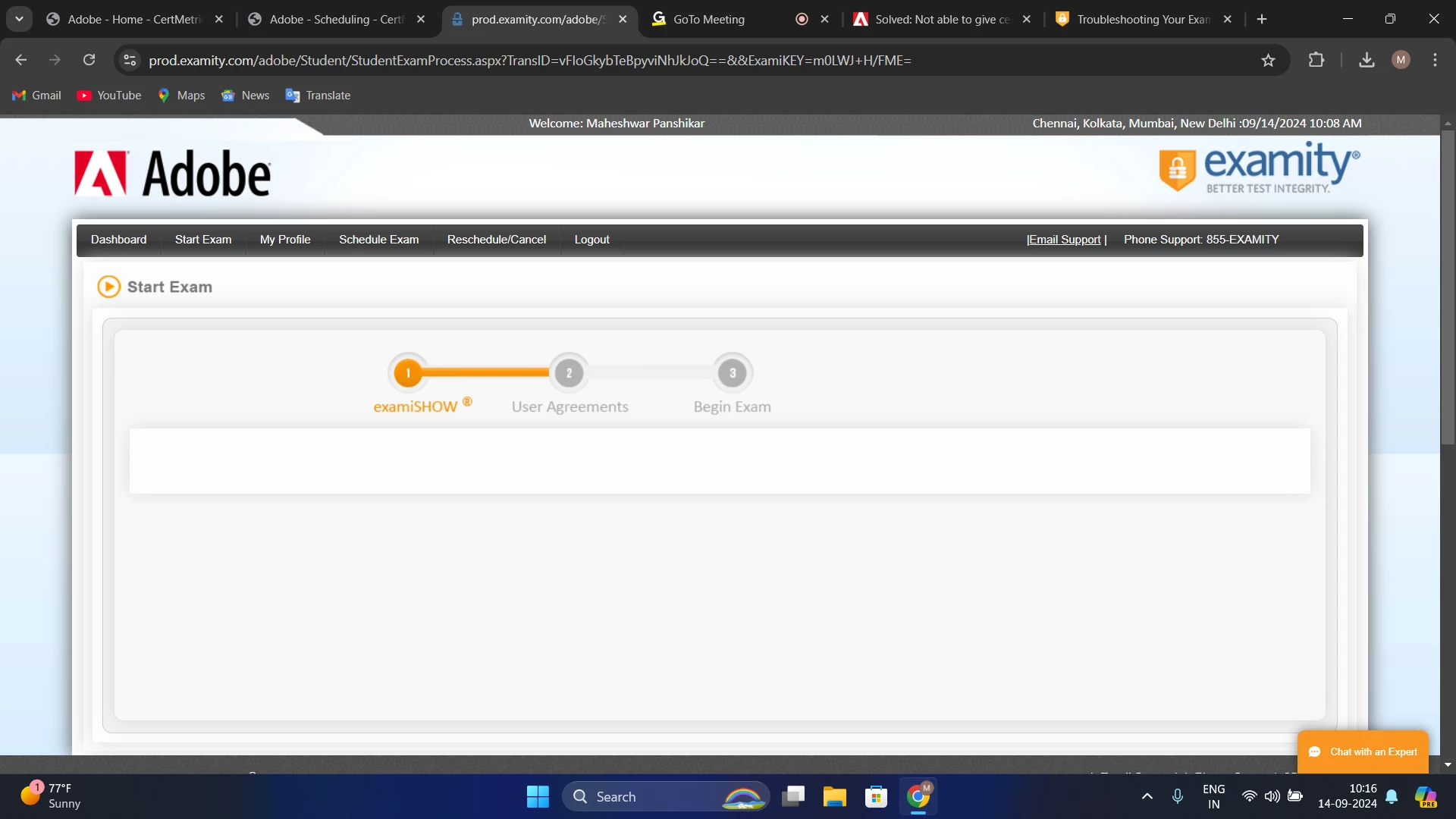 I have scheduled exam for Adobe Experience Manager Professional sites developer certification exam, I also joined before 15 mins of scheduled time & exam proctoring window started, It downloaded an app & asked to join session on GoTo meetings app. But it kept saying "waiting for join". I waited for 15 mins after the exam also. But no one joined to start the session. I contacted to examity chat support. They started new meeting but there also no one joined & now exam is showing incomplete. They asked to reschedule the exam without taking exam. Please need help in this situation. I also mailed to certif@adobe.com & waiting for their response. Please guide to get refund or atleast reschedule exam without fee for next.
