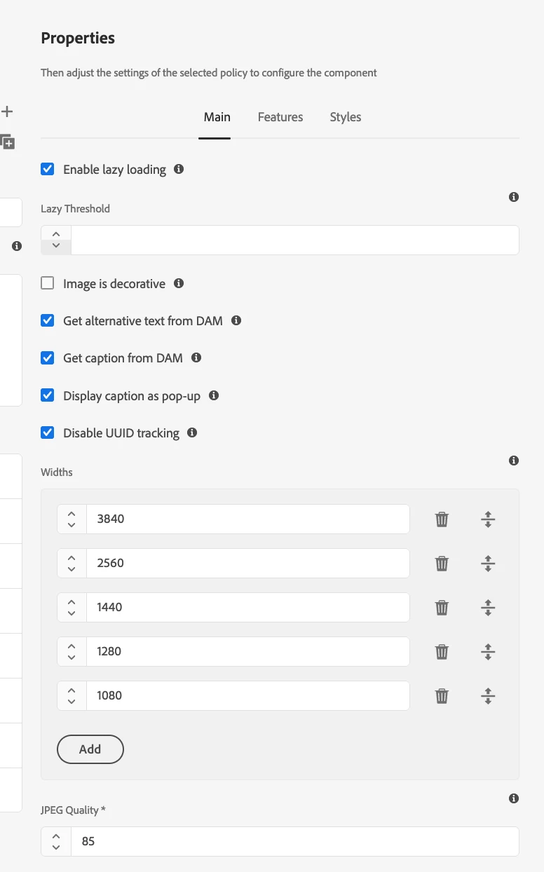 We are trying to change image resolution on Cloud. But, we are not sure if this is the place where image resolution is changed: /system/console/configMgr/com.day.cq.dam.core.impl.cache.CQBufferedImageCache. Also, on cloud we can not access this url. How can we change it? Thanks!