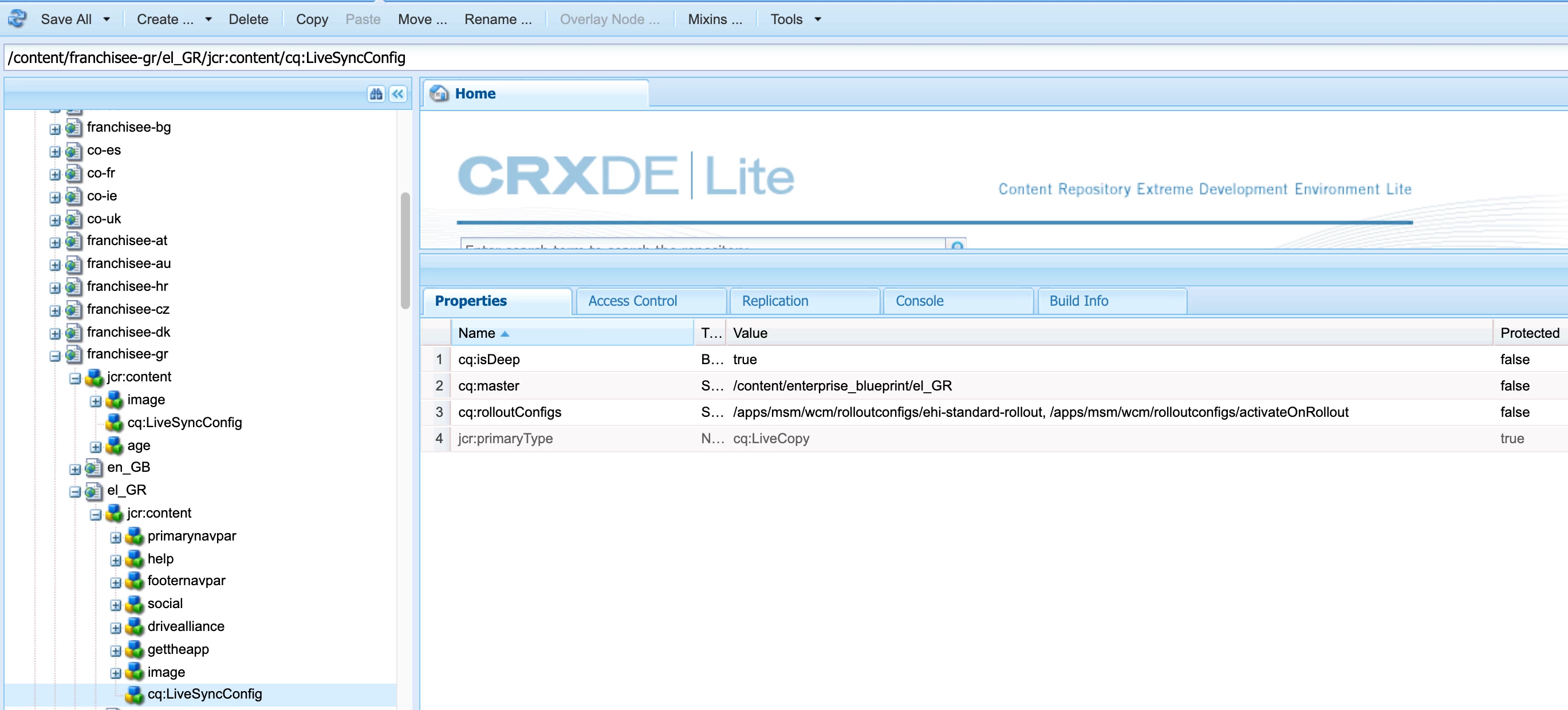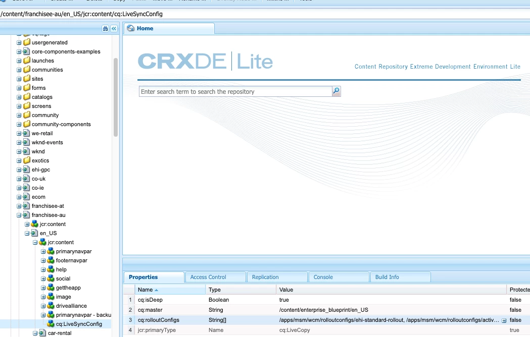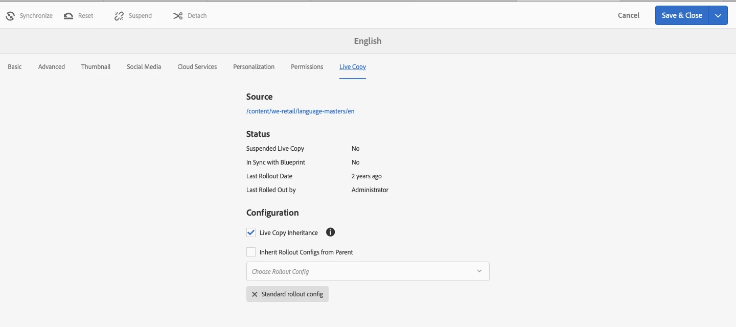 cq:rolloutConfigs : indicates active Rollout Configurations applied on the Livecopy