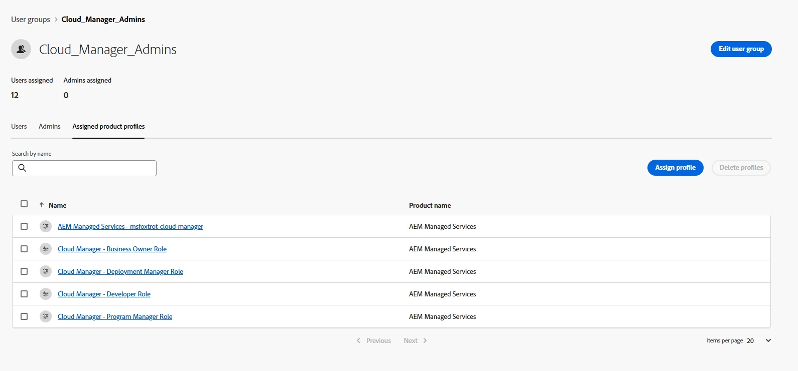 There is an OOTB group in Admin Console called "Cloud_Manager_Admins". It contains product profiles for all the roles on cloud manager. I was wondering what's the purpose of this group? Would it be okay if this is deleted as we have our own customized groups.