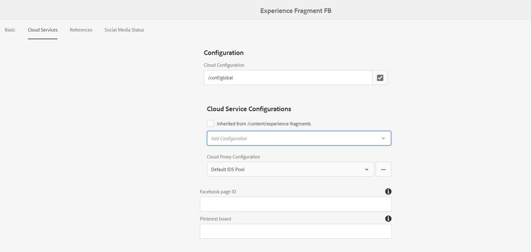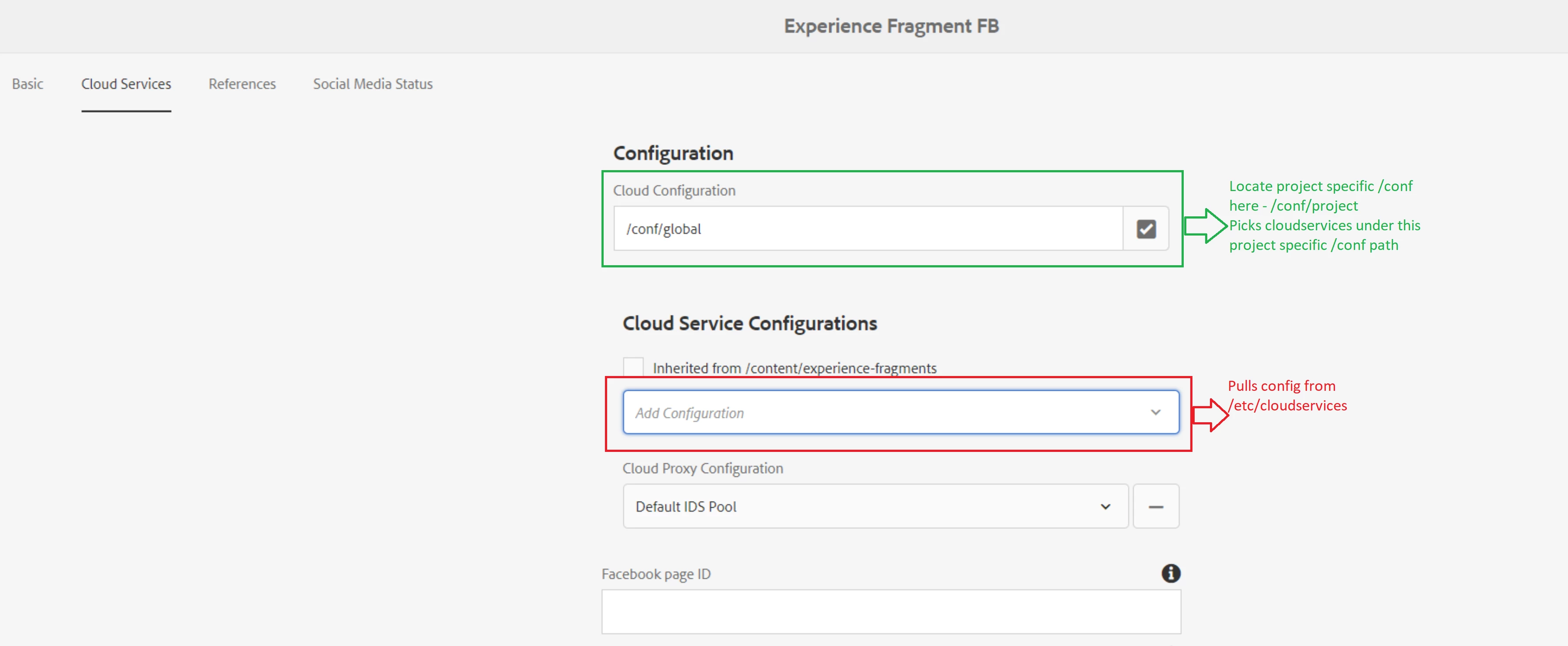 When I check the experience fragment property -> Cloud Services tab, I don't see the cloud configs in the dropdown. I know that the old location for the cloud services is under /etc but we are not storing there.