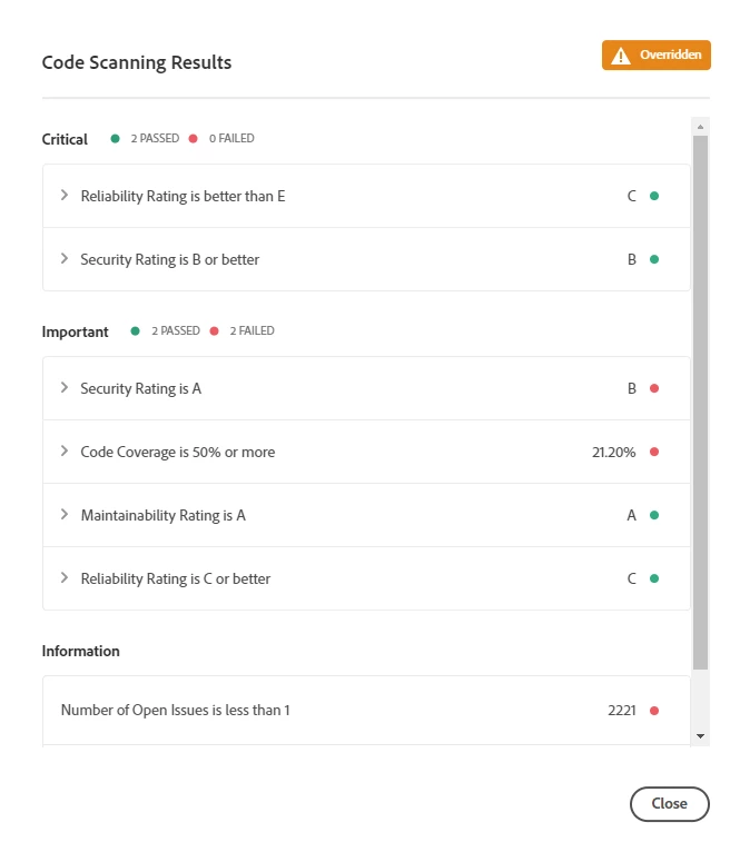 When I execute the pipeline to deploy my software to DEV and the code scanning step finishes, the porcentage of code coverage is much lower is the pipeline than in my local IDE.