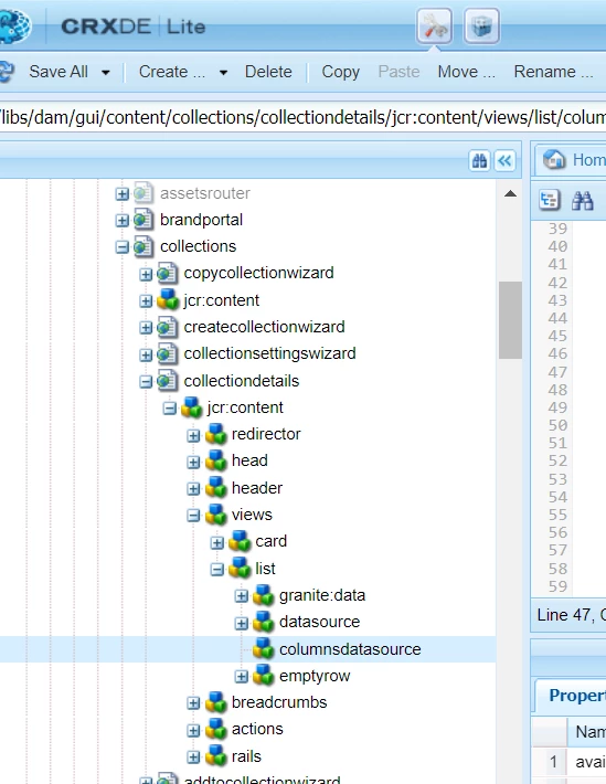 I'm trying to find the jsp file for the collection detail list view, but haven't been able to locate it. I thought it might be this: /libs/dam/gui/coral/components/admin/collections/contentrenderer/collectiondetailsrow/collectiondetailsrow.jsp but it doesn't look like it has the right columns. Could anyone help me locate it? Any tips on finding these kinds of files in crx/de?