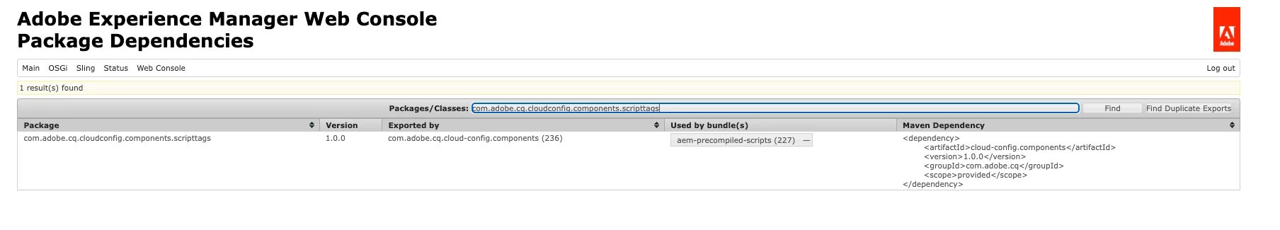com.adobe.cq.cloudconfig.components.scripttags.ScriptTagComponents maven dependency
