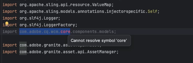 com.adobe.cq.wcm.core cannot find the simbol