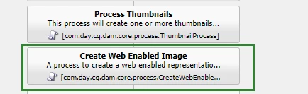 The workflow "DAM Update Asset" is working by default. But if I add a new step "Create Web Enabled Image", I will get the the error message "Process resource is null". If I remove the step "Create Web Enabled Image" , I am still get the error and "DAM Update Asset" can' work anymore.