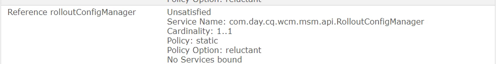 com.day.cq.wcm.msm.impl.RolloutConfigManagerFactoryImpl RolloutConfig /libs/msm/wcm/rolloutconfigs/activate is invalid: Failed to resolve Factory with id rep:policy, maybe Service is uninstalled