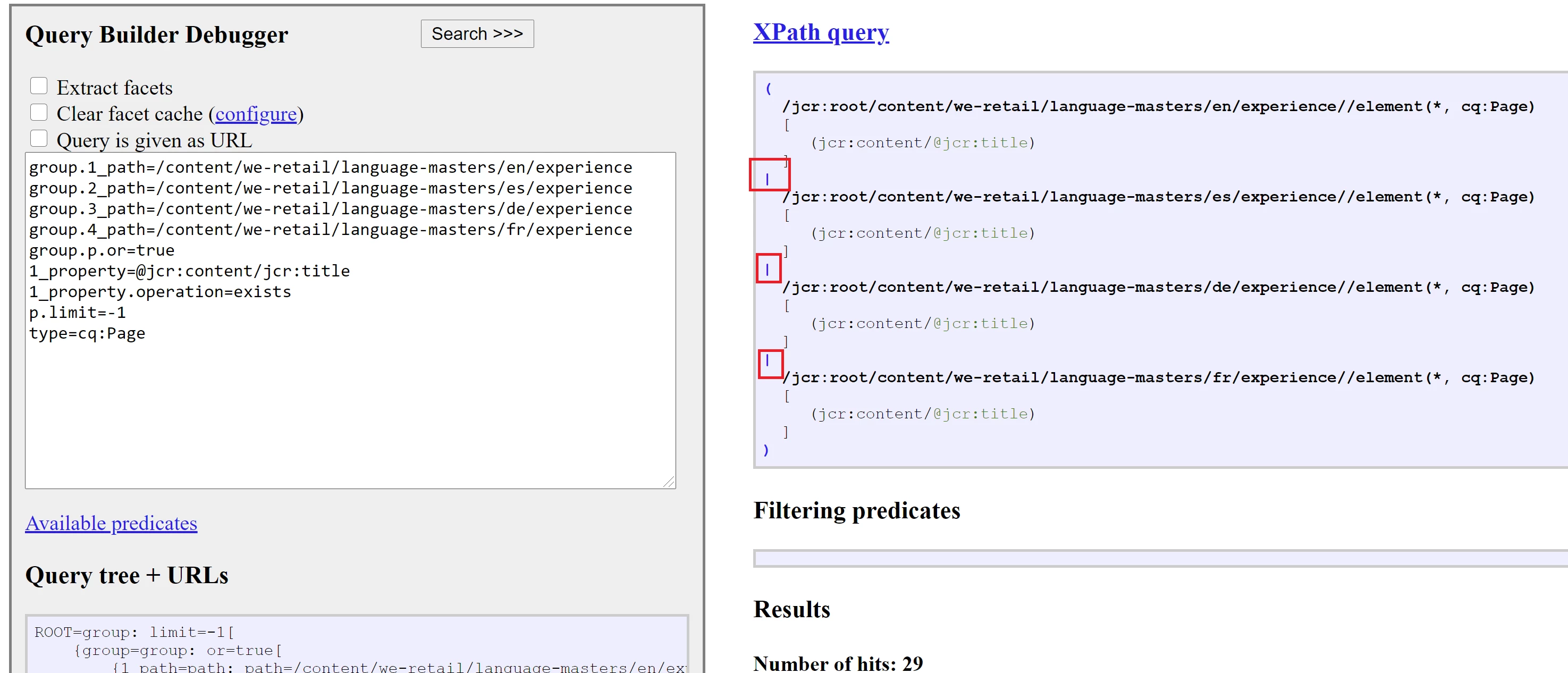 Also I am looking for the solution for another query which searches for the multiple paths for the specific property and the results should includes the results from the different paths together.