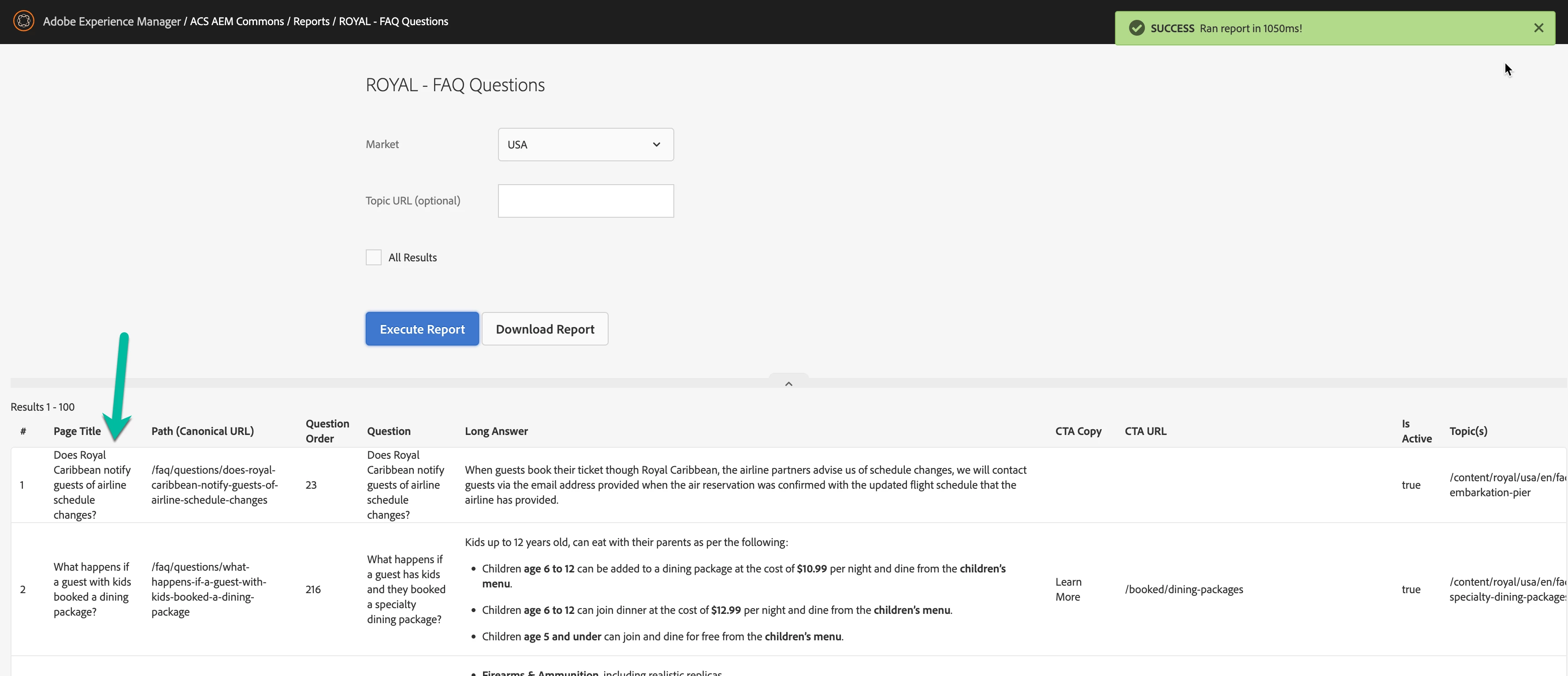 In some cases, since we have too many nodes for many different regions/variations, I ask the authors to select a region, and then I use that selection to reduce the search. In this specific example, for an FAQs report, I ask them to select the market and then use that to add an ISDESCENDANTNODE clause.
