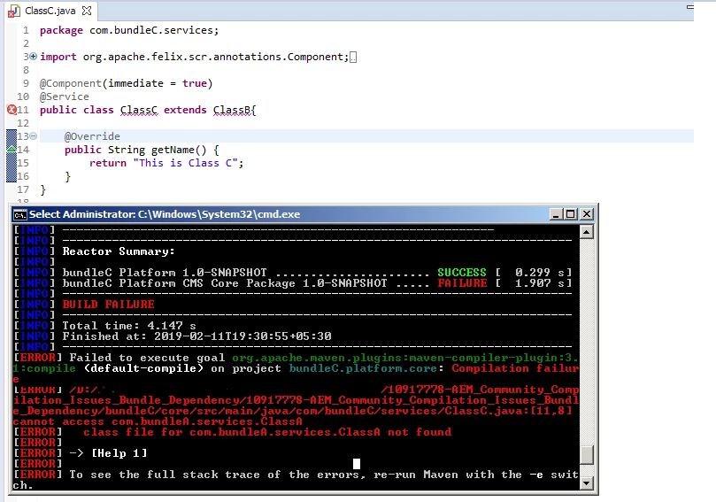 Could you guys please let me understand about this behavior. Actually our requirement is to create a modularity between bundles hence Bundle C should not have any dependency with Bundle A. Is there any other way to achieve this without adding the Bundle A dependency in Bundle C.