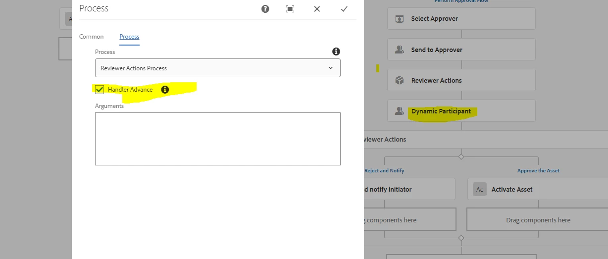 I have a workflow which activates the page based on a condition and there are some additional process also available apart from activation. In the below code, I am replicating the asset , if the drop down selection is approve(I am using dialog in the dynamic participant step). Now how can I complete the workflow programatically. I cannot do this using OR split options as the split is not suitable for my use case.