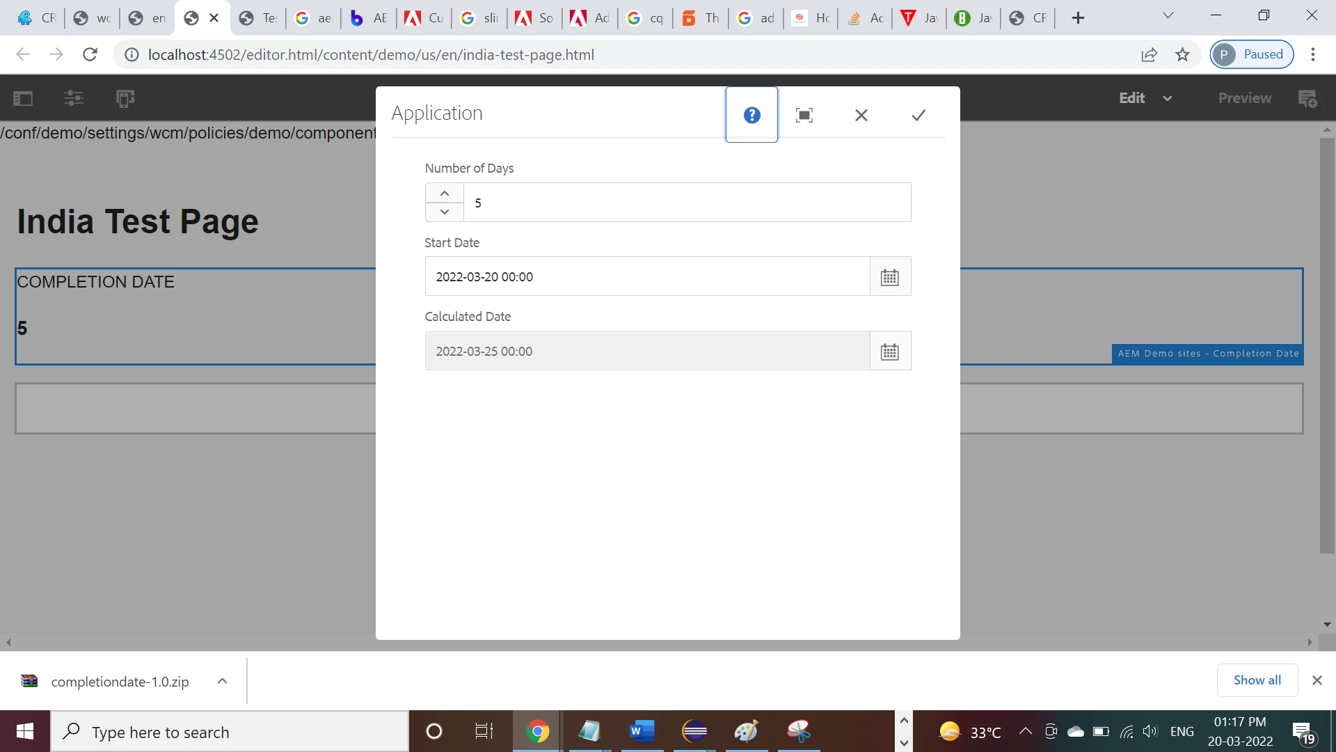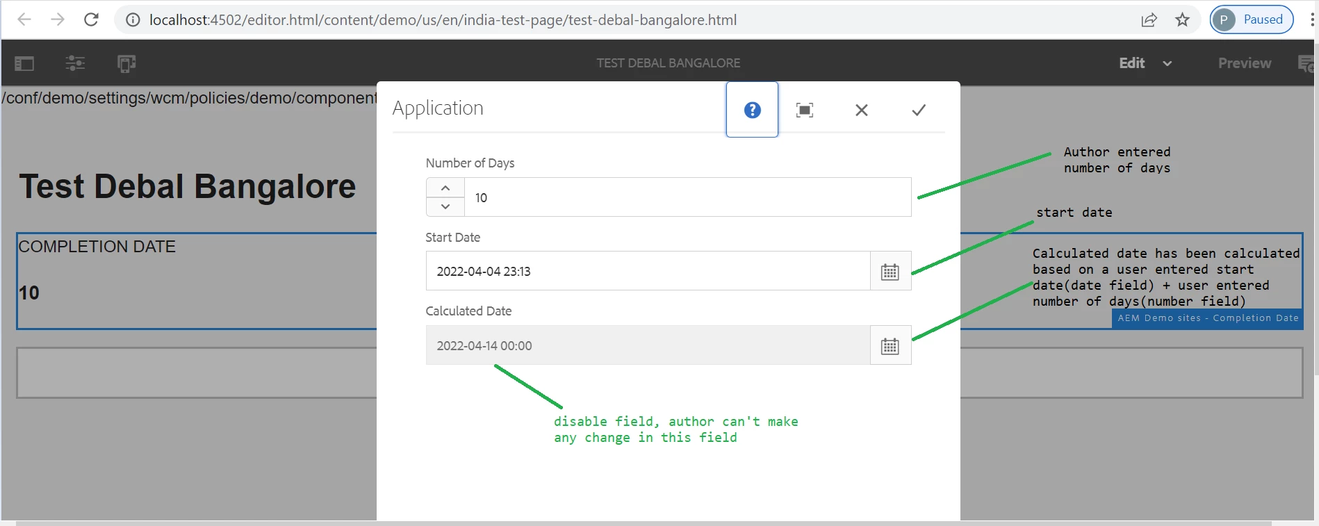 Business logic like completion date (date field) to be calculated based on a user entered start date(date field) + user entered number of days(number field) is part of my sling model -