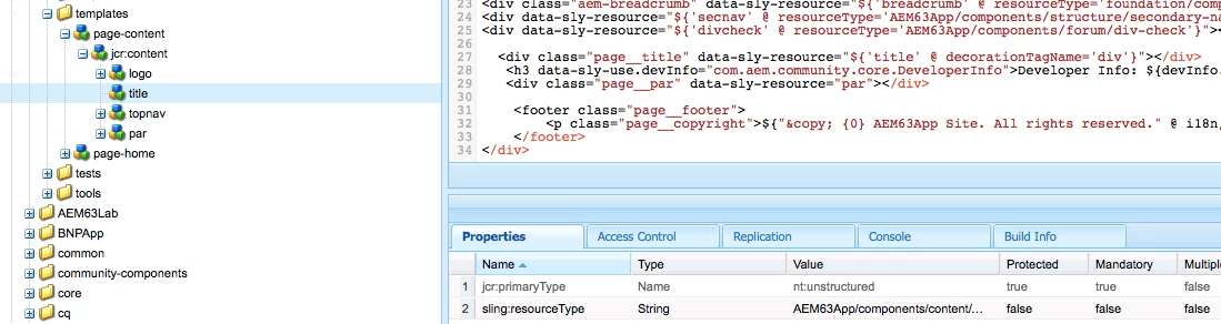 Once banner component is authored we can see the component on /content/home0/jcr:content
