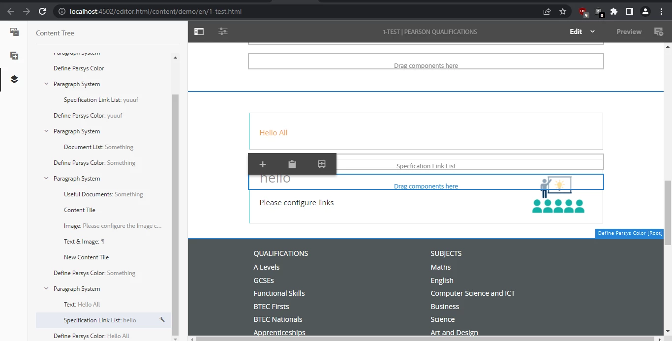 Component is not showing in page but showing in content tree
