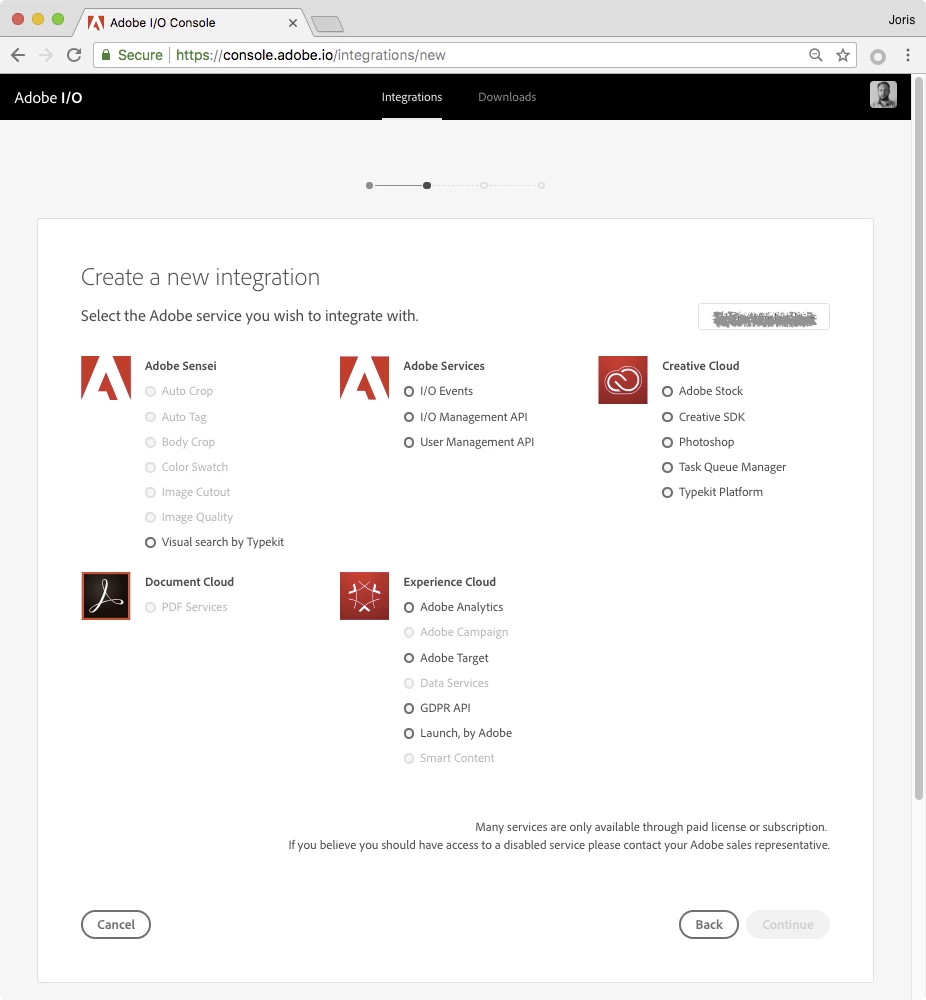 Where can I find accurate, and current documentation to complete this integration? I've tried setting up an application via Adobe.io, but am unsure of the correct selections: