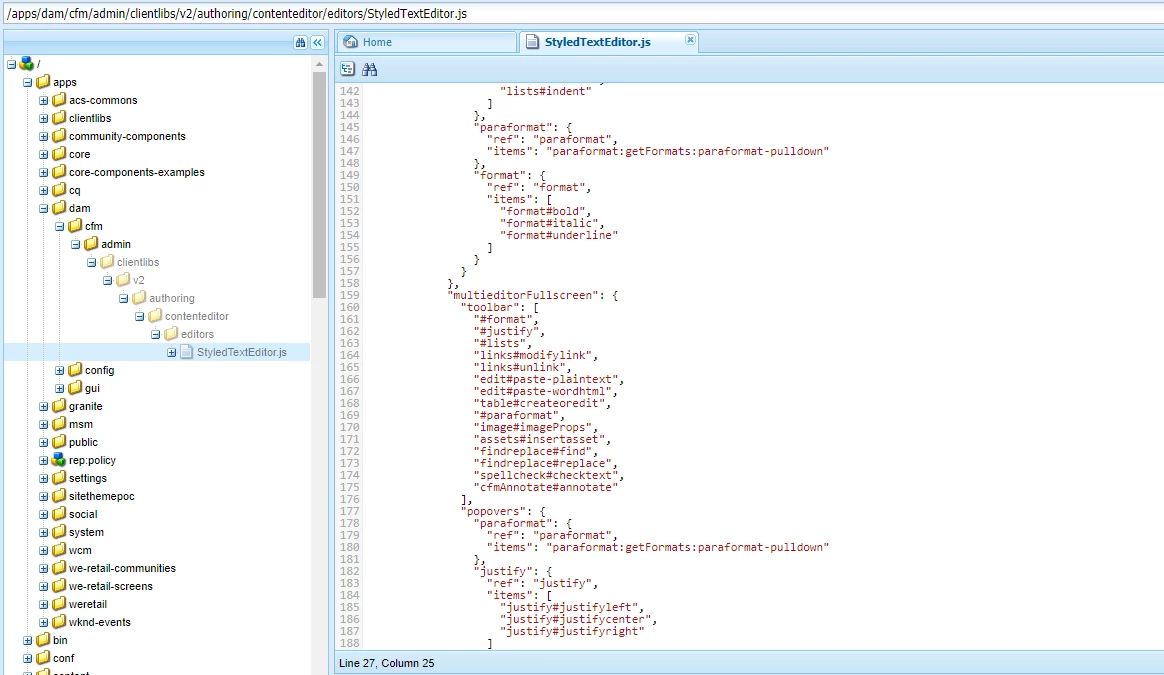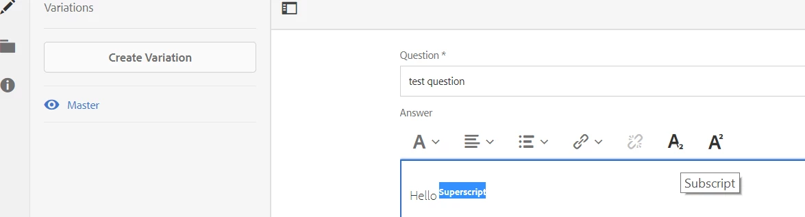 One quickest way to add subscript & superscript to CF Content Editor by editing /libs/dam/cfm/admin/clientlibs/v2/authoring/contenteditor/editors/StyledTextEditor.js