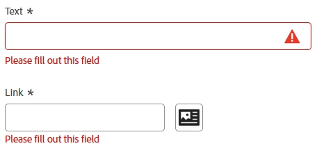 | Improved/Expected Behavior: | "aem-content" fields have a red outline, a "red triangle with exclamation mark" icon on the right side of the input box and an aria-invalid="true" attribute. |
