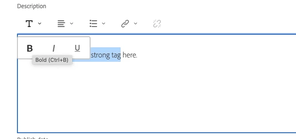 | Request for Feature Enhancement (RFE) Summary: | Strong and Em tags in multiline text in Content Fragments |