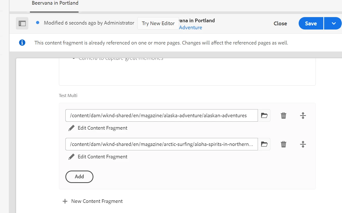 Content Fragment with Multifield Bug
