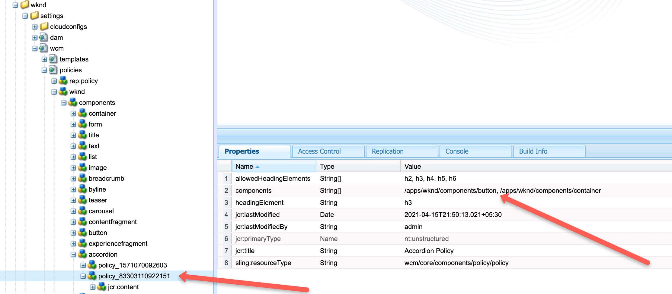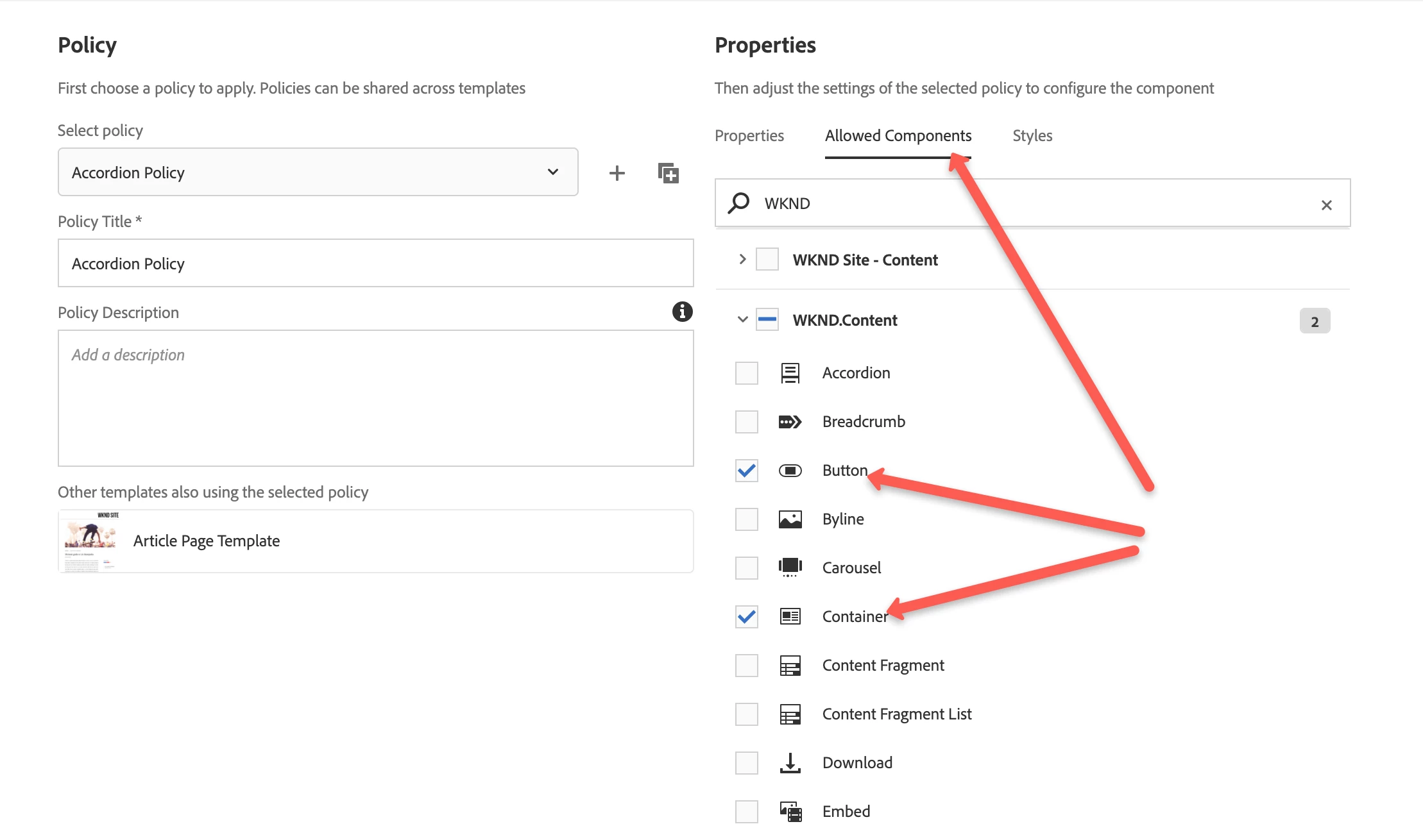 Content Policy for container inside Accordion Component