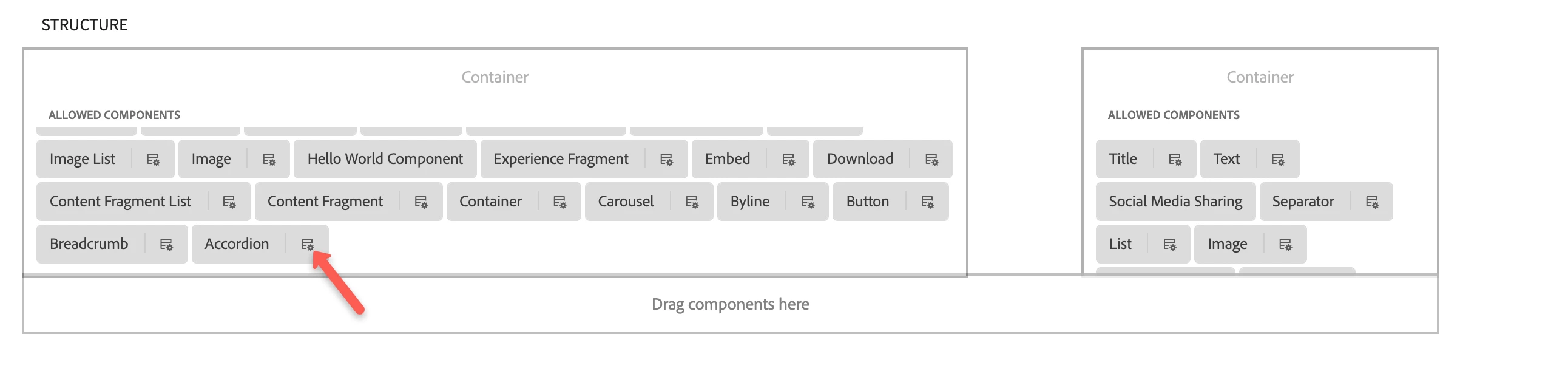 I want to use the accordion component from core components but I don't want to nest it. The approach is that to create a policy that will not allow adding accordion to the accordion panels. I would like to add a possibility to add a container to the accordion panel but restrict this container to don't add an accordion component.