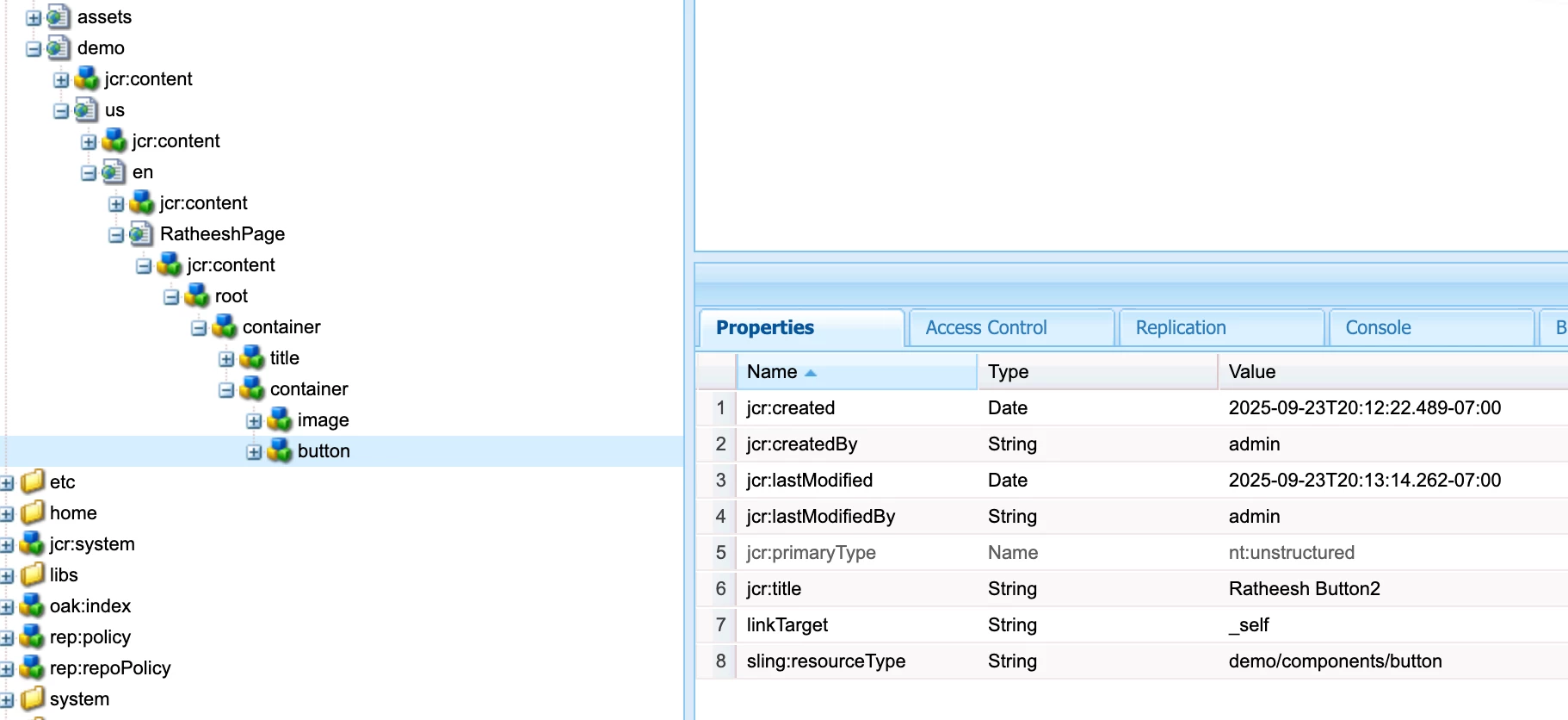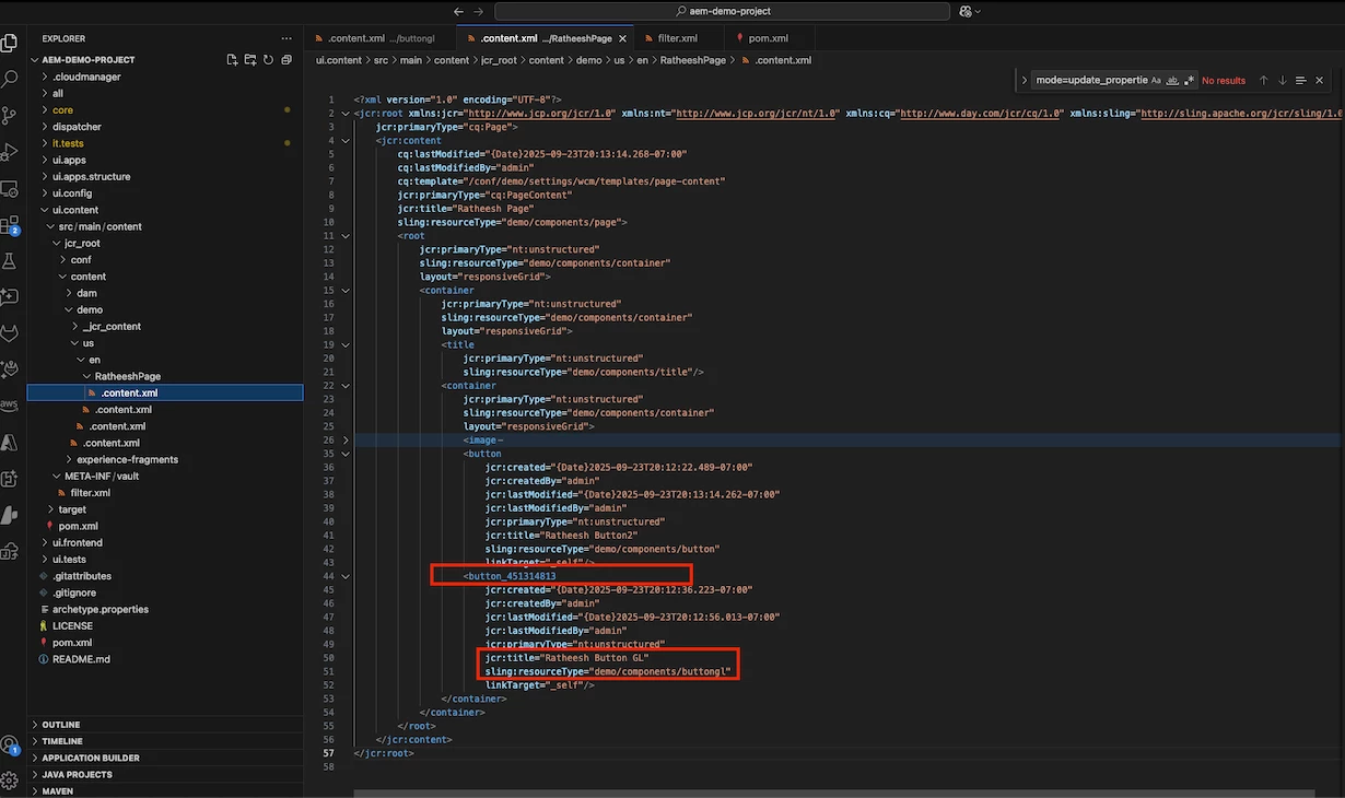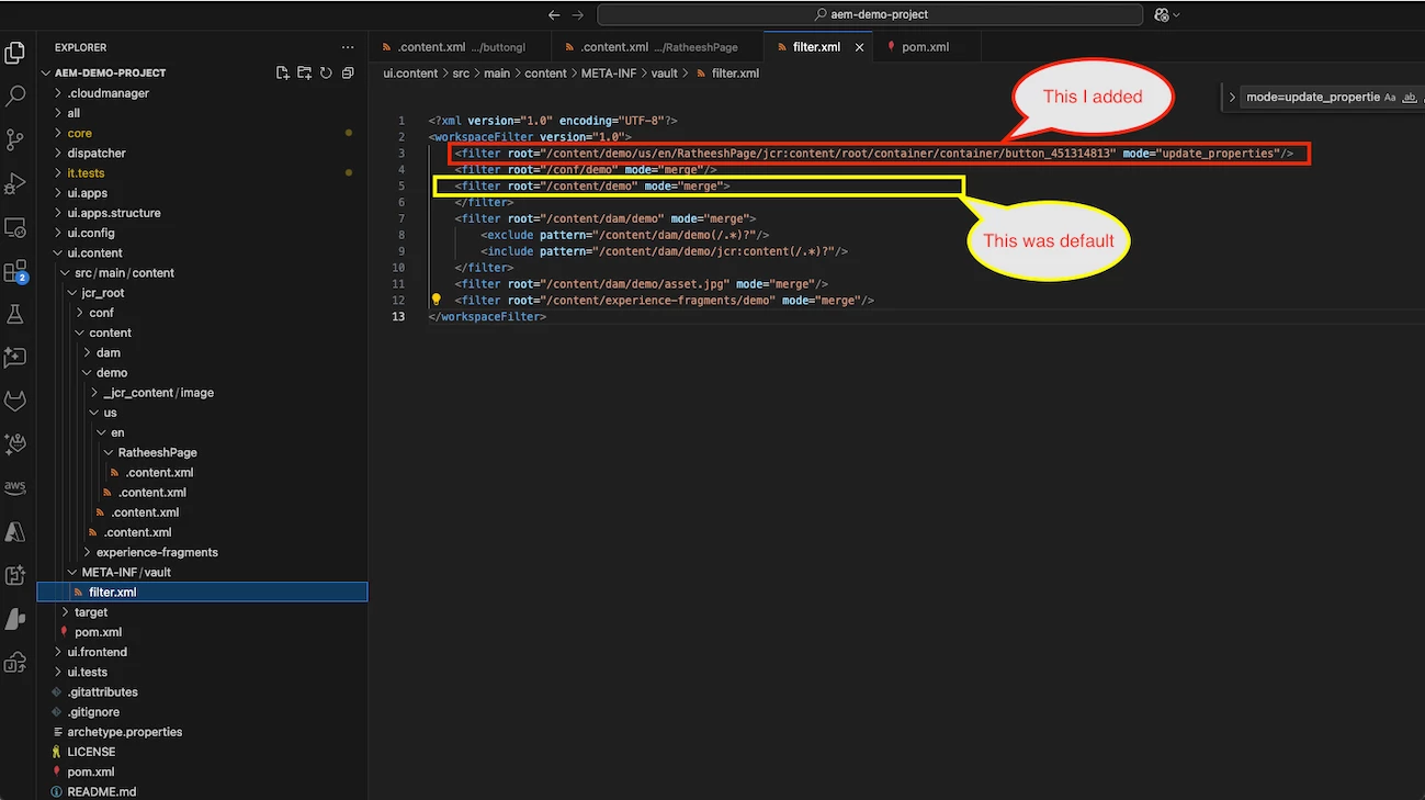 <filter root="/content/demo/us/en/RatheeshPage/jcr:content/root/container/container/button_451314813" mode="update_properties"/>
