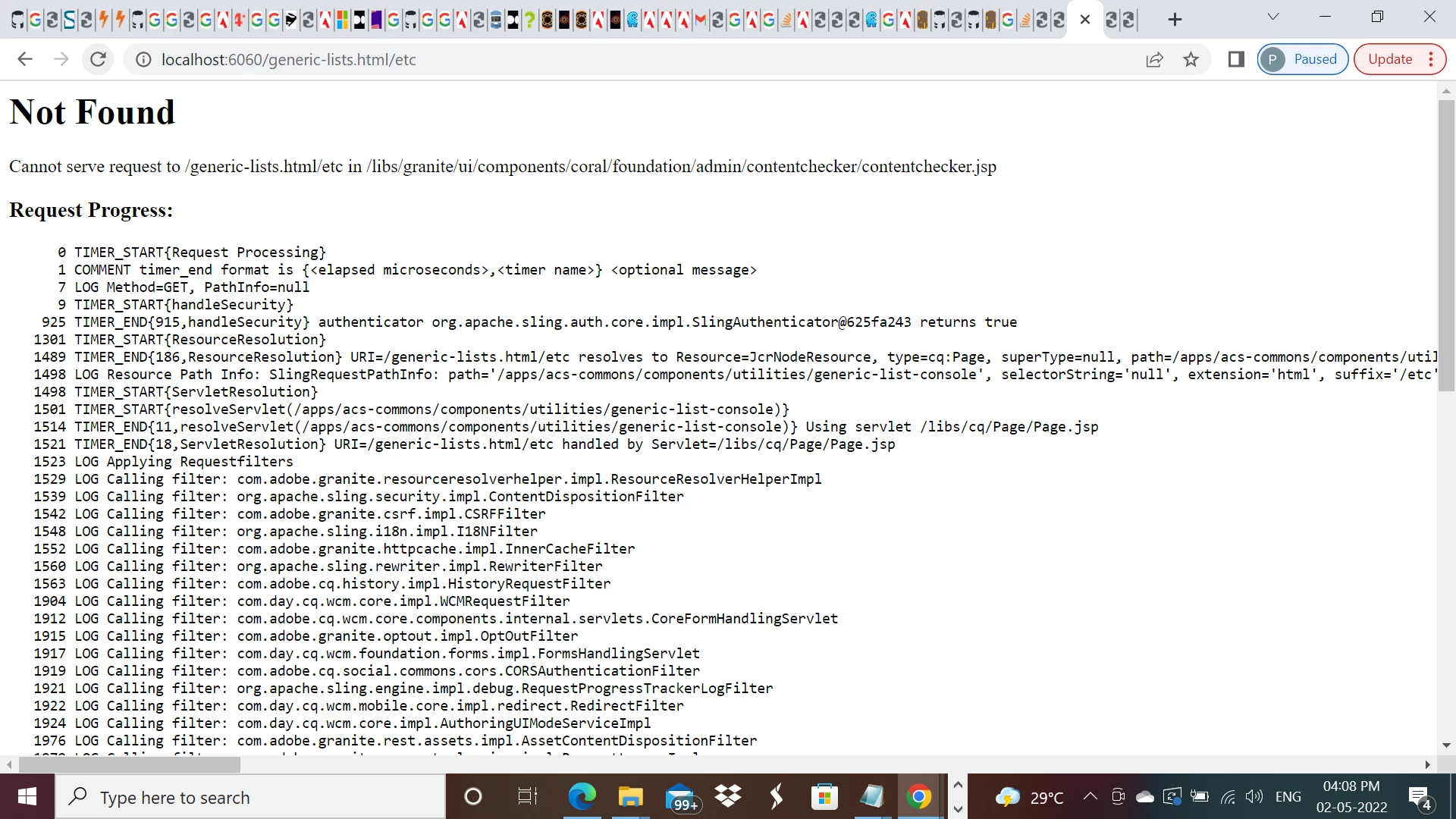 Cannot serve request to /generic-lists.html/etc in /libs/granite/ui/components/coral/foundation/admin/contentchecker/contentchecker.jsp