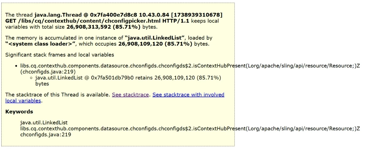Did any one aware of the below configuration where it will be used and the purpose. When checked heap dump analysis we have found lot of resources are consumed using the below path. Did any one tell what might be cause the issue to heap too much for this?