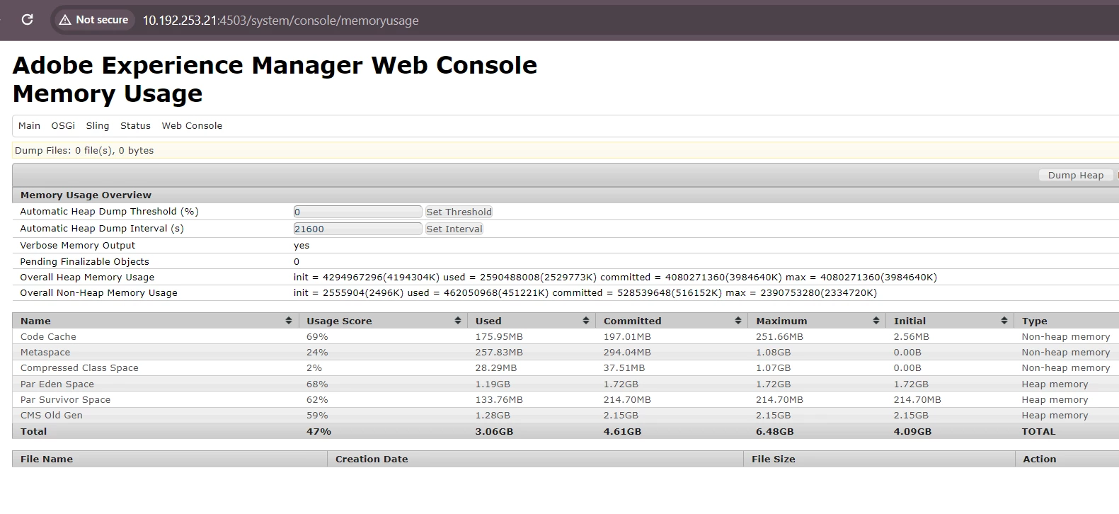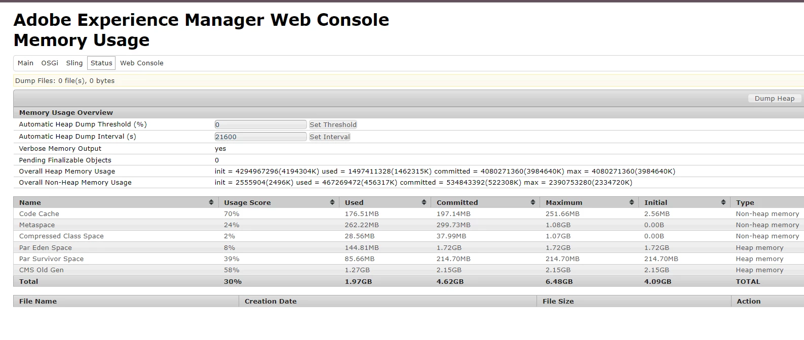| Current/Experienced Behavior: | The overall heap memory usage in /system/console/memoryusage does not align with the Reporting console in Cloud Manager. |