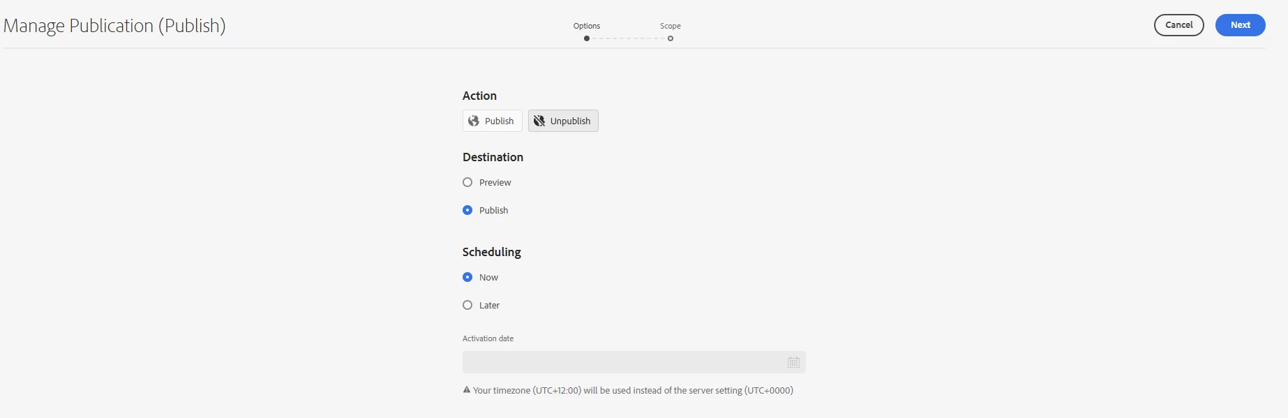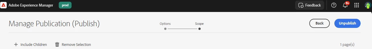 | Use-case: | When using the Manage Publication option to publish pages, when you choose to unpublish a page and go through the steps, there is still areas on the steps that says "Publish". From an editor/authoring POV this can be confusing as you want to be sure you are in the right area. |