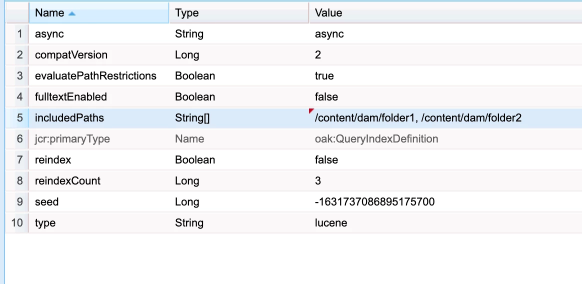 I tried to create a new index under nt:base with