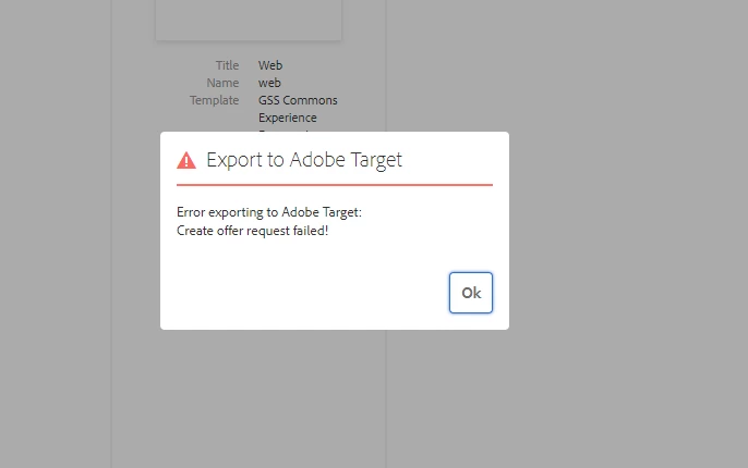 Create offer request failed - error while syncing an activity from AEM to Adobe Target