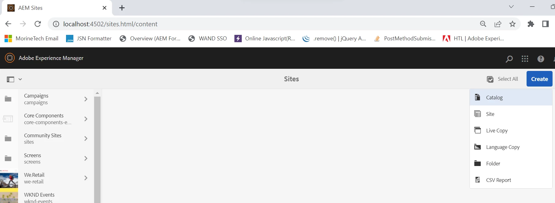 I was following the Quick site creation steps in the below tutorial (https://experienceleague.adobe.com/docs/experience-manager-learn/getting-started-wknd-tutorial-develop/site-template/create-site.html?lang=en). But unfortunately in my local I am not able to find the Create > Site (Template) Option.