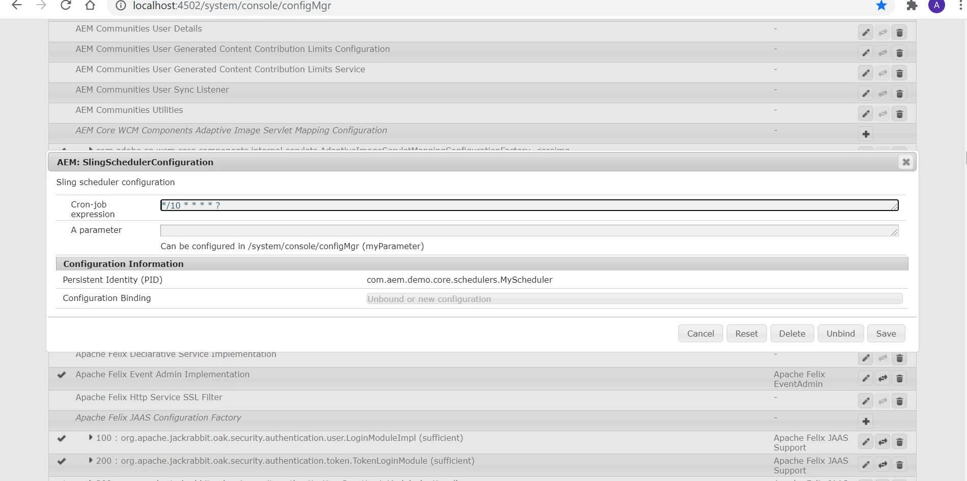 name = "AEM: SlingSchedulerConfiguration",