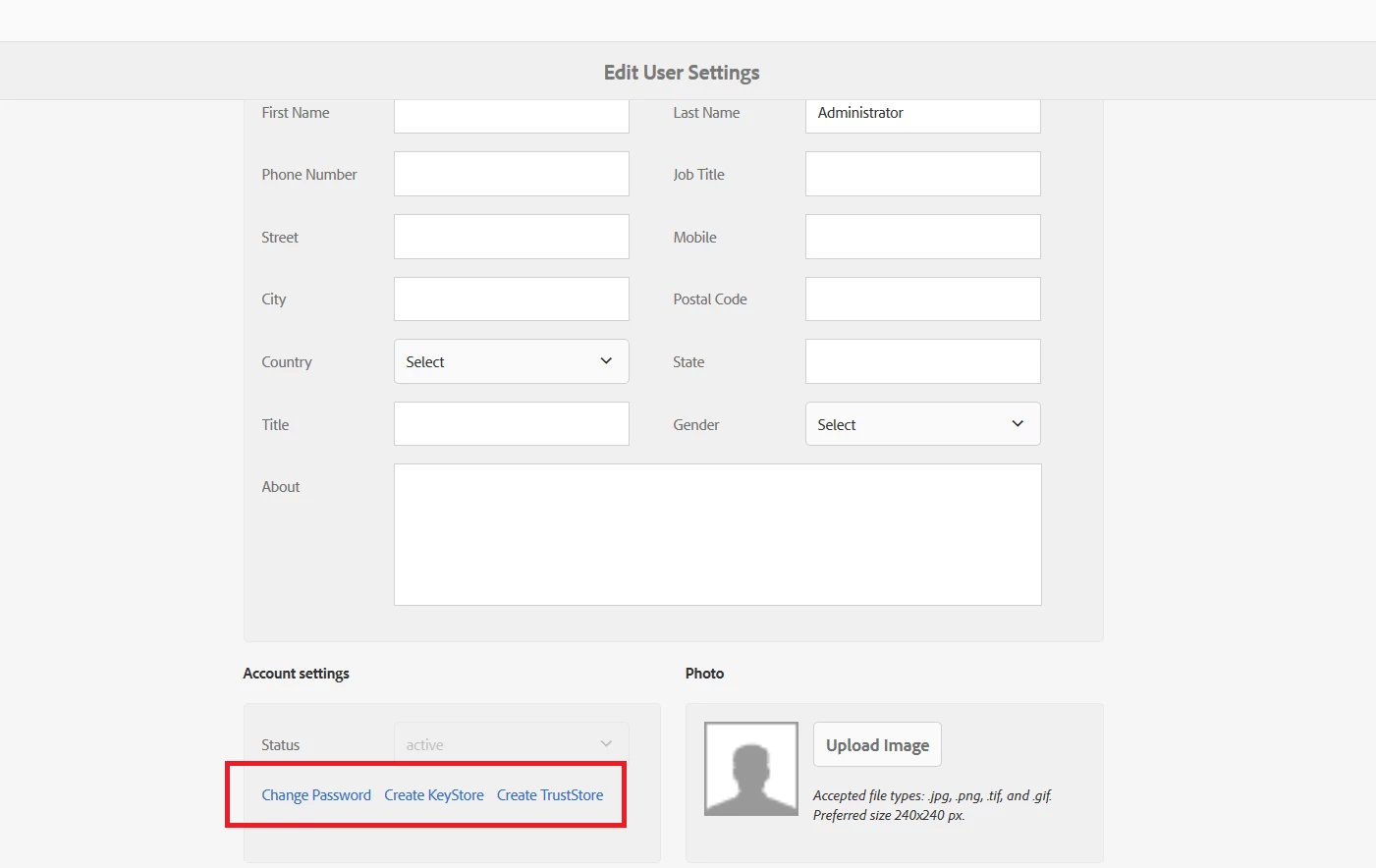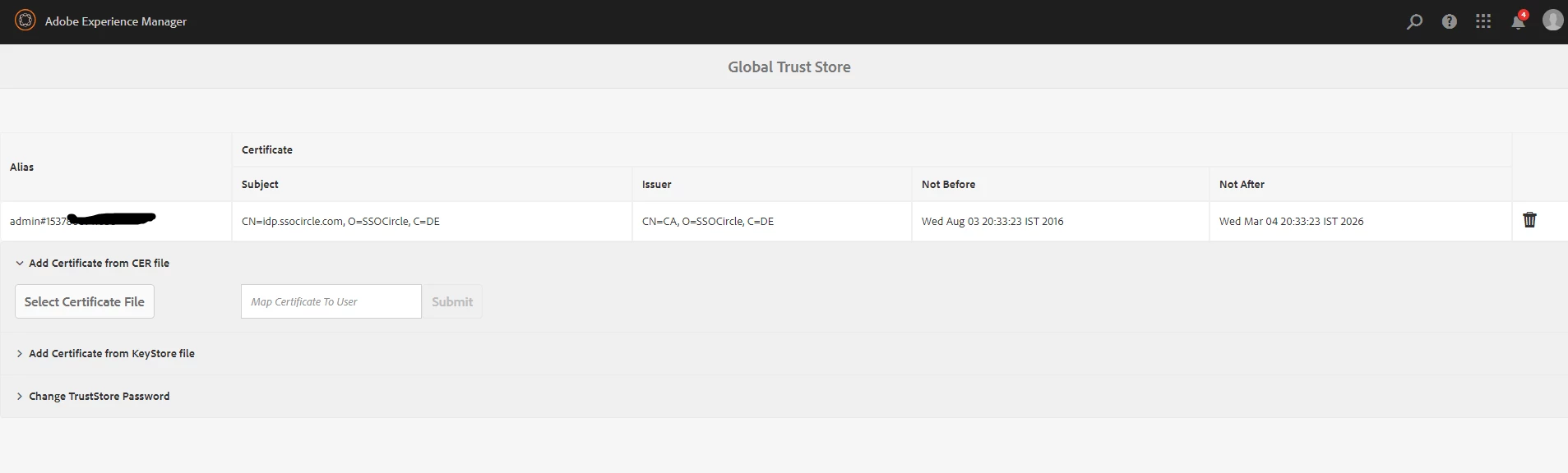 5. Enter the password for the TrustStore and click Save. For the demo purpose, you can use admin as the password.