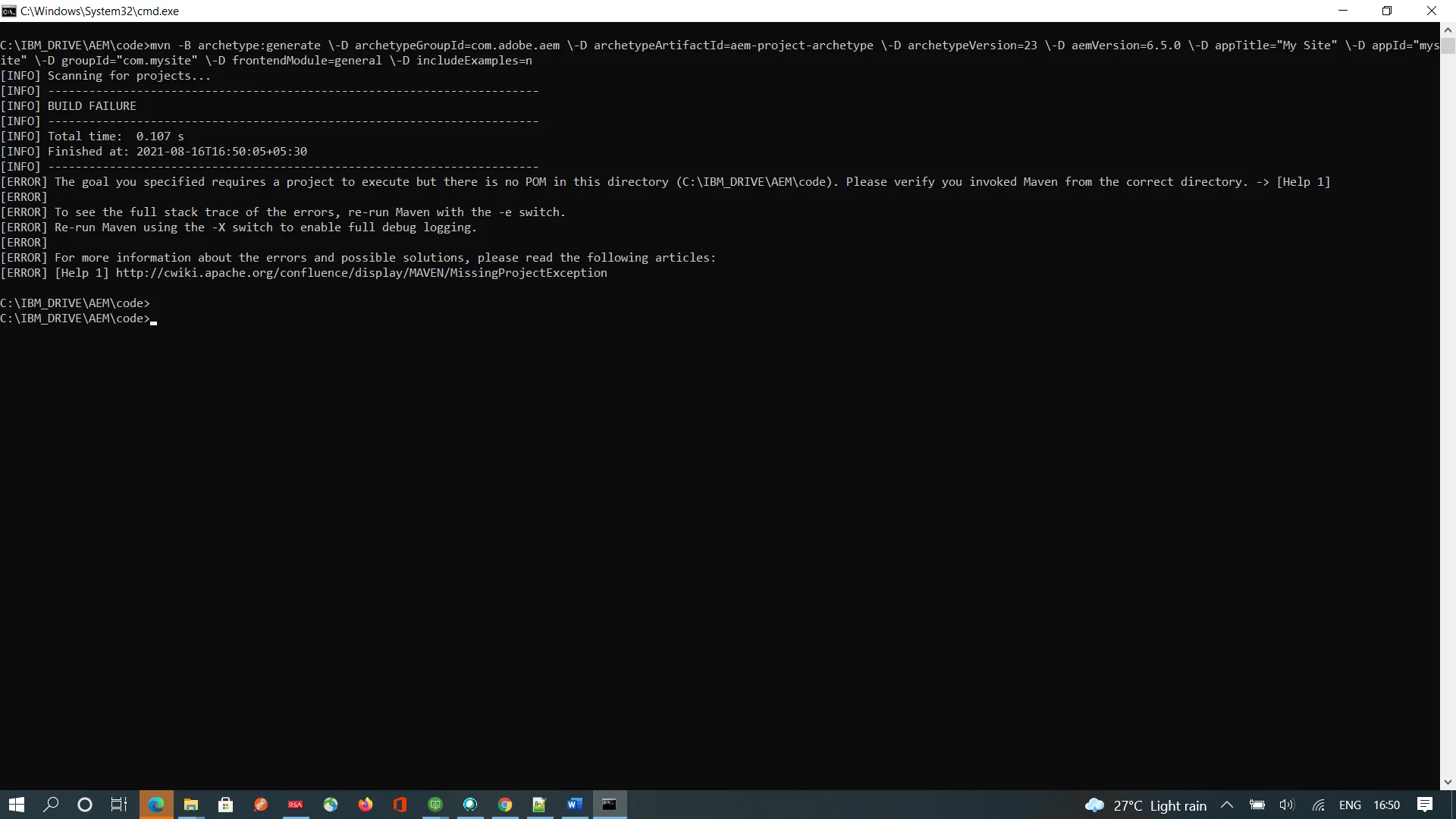 Creating project using mvn archtype 23 issue