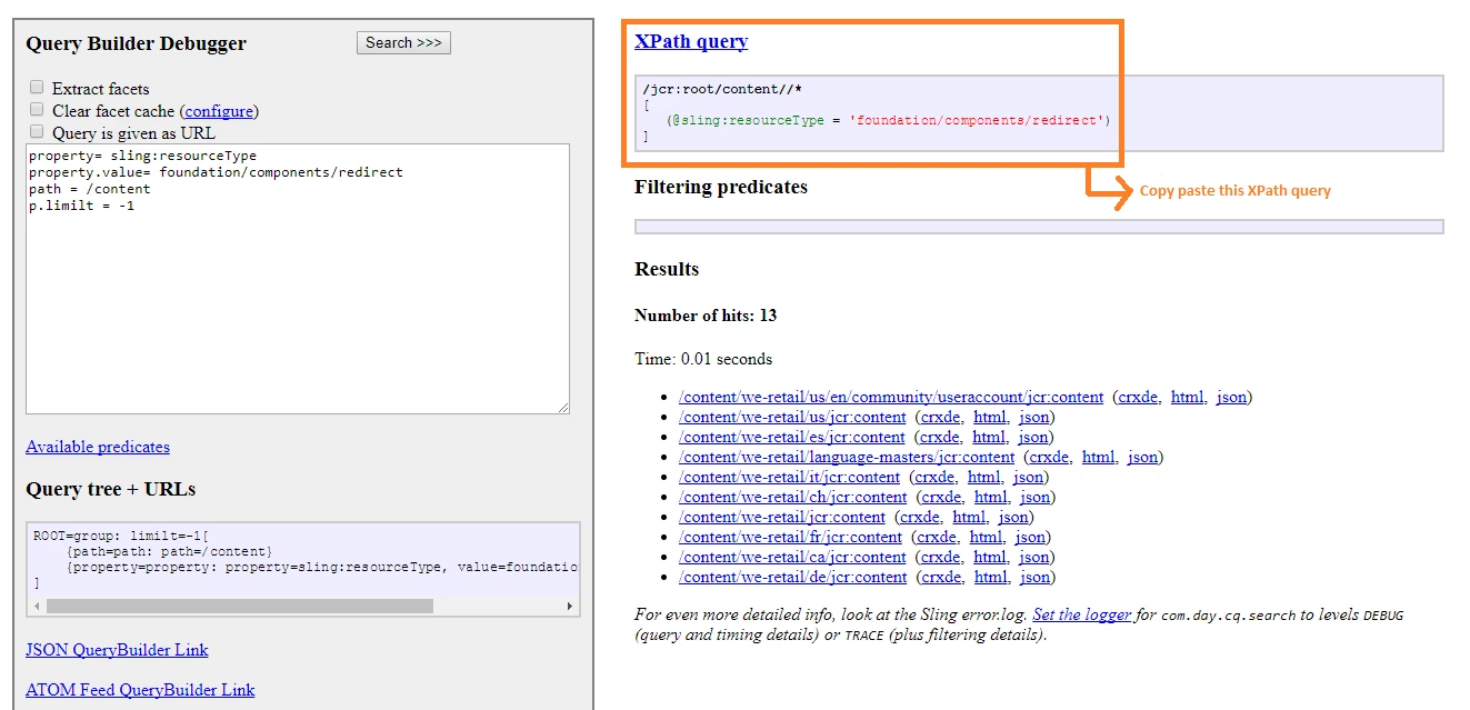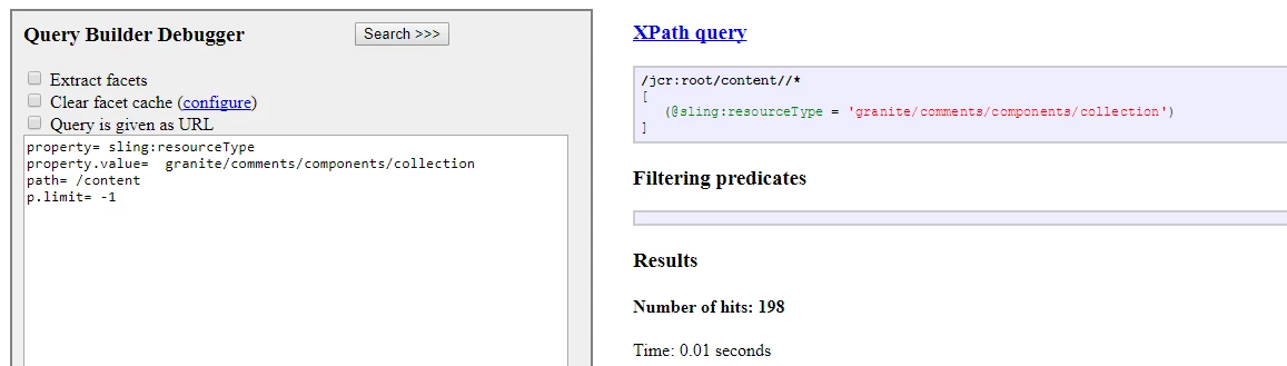 But when I use /libs/cq/search/content/querydebug.html I am able to retrieve the results successfully as shown below. This happens only in 6.3.