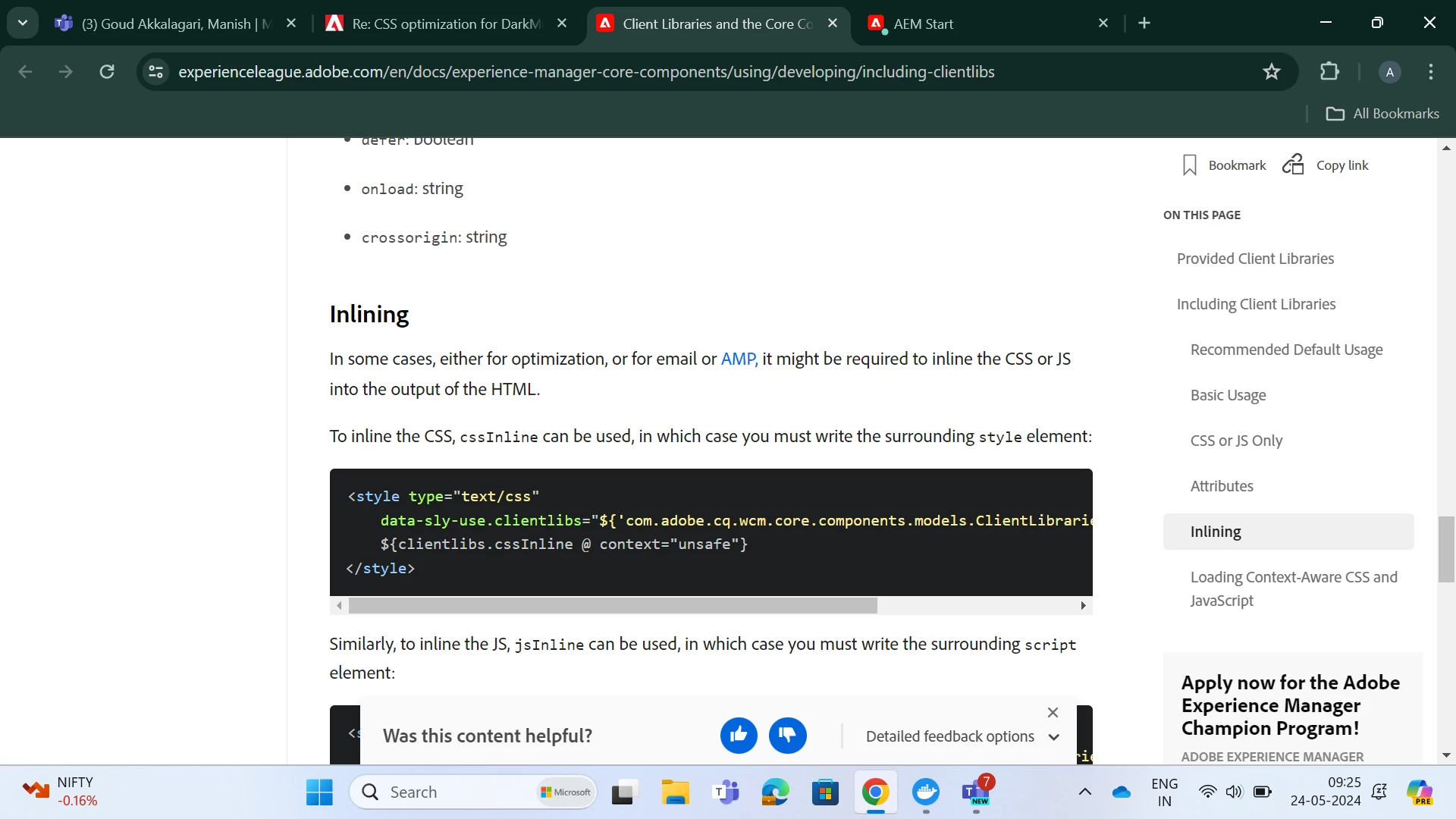 1. Place the CSS in the clientlibs : placing the CSS in the clientlibs is creating an issue for us.The issue is