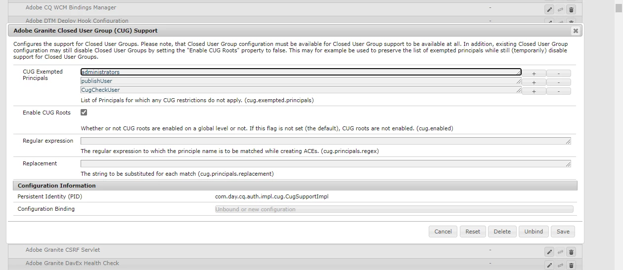 Then I have added publishUser in CUG exempted principal configuration as below.