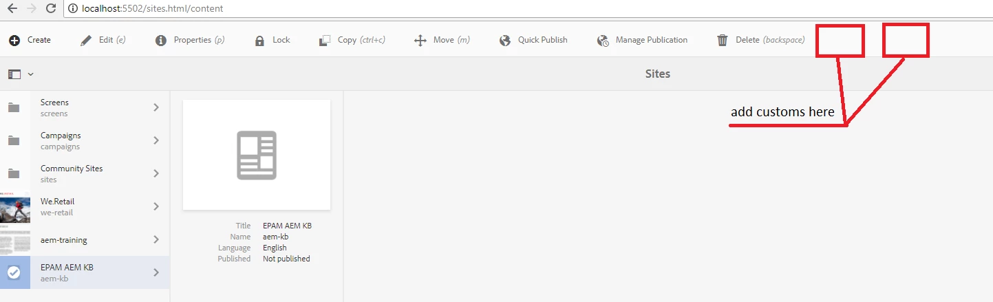 If you want to do some action on button you can add action granite resource like lock action /libs/wcm/core/content/sites/jcr:content/actions/selection/lockpage